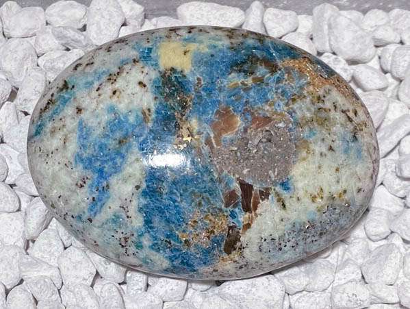 Ein seltener Afghanit Seifenstein in A-Qualität, sorgfältig geschliffen und fein poliert. Dieser Edelstein zeigt eine intensive blau bis blauviolette Farbgebung mit hellen Strukturen, die jedem Stück ein individuelles Erscheinungsbild verleihen. Jeder Stein ist ein einzigartiges Natur-Unikat mit edlem Glanz und angenehmer Haptik.