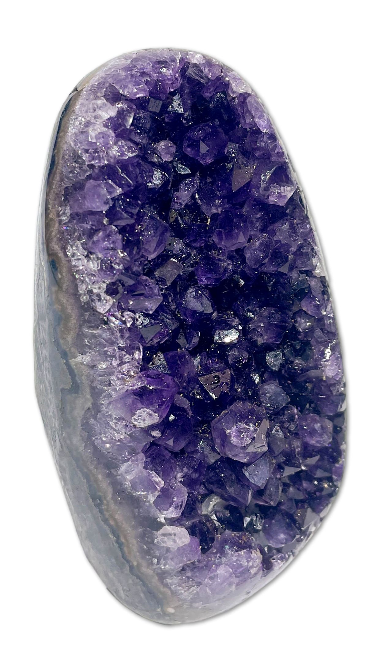Die Amethyst Drusen aus Uruguay haben eine besonders intensive Farbe. Alle unsere Amethystdrusen haben einen polierten Rand und von höchster Qualität.