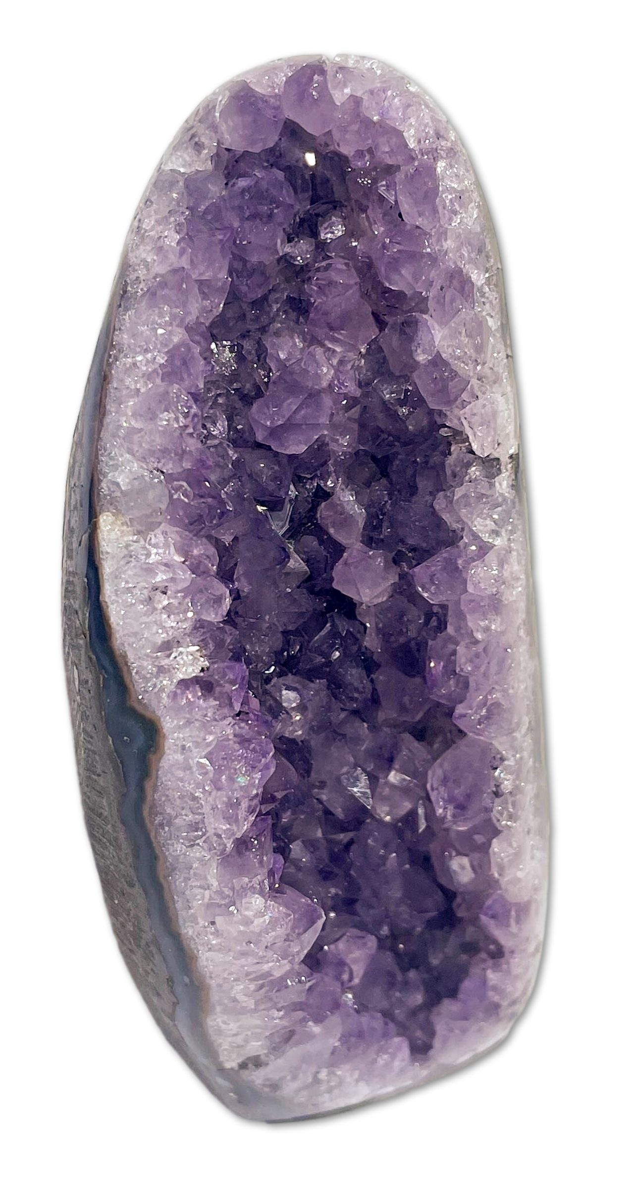 Die Amethyst Drusen aus Uruguay haben eine besonders intensive Farbe. Alle unsere Amethystdrusen haben einen polierten Rand und von höchster Qualität.