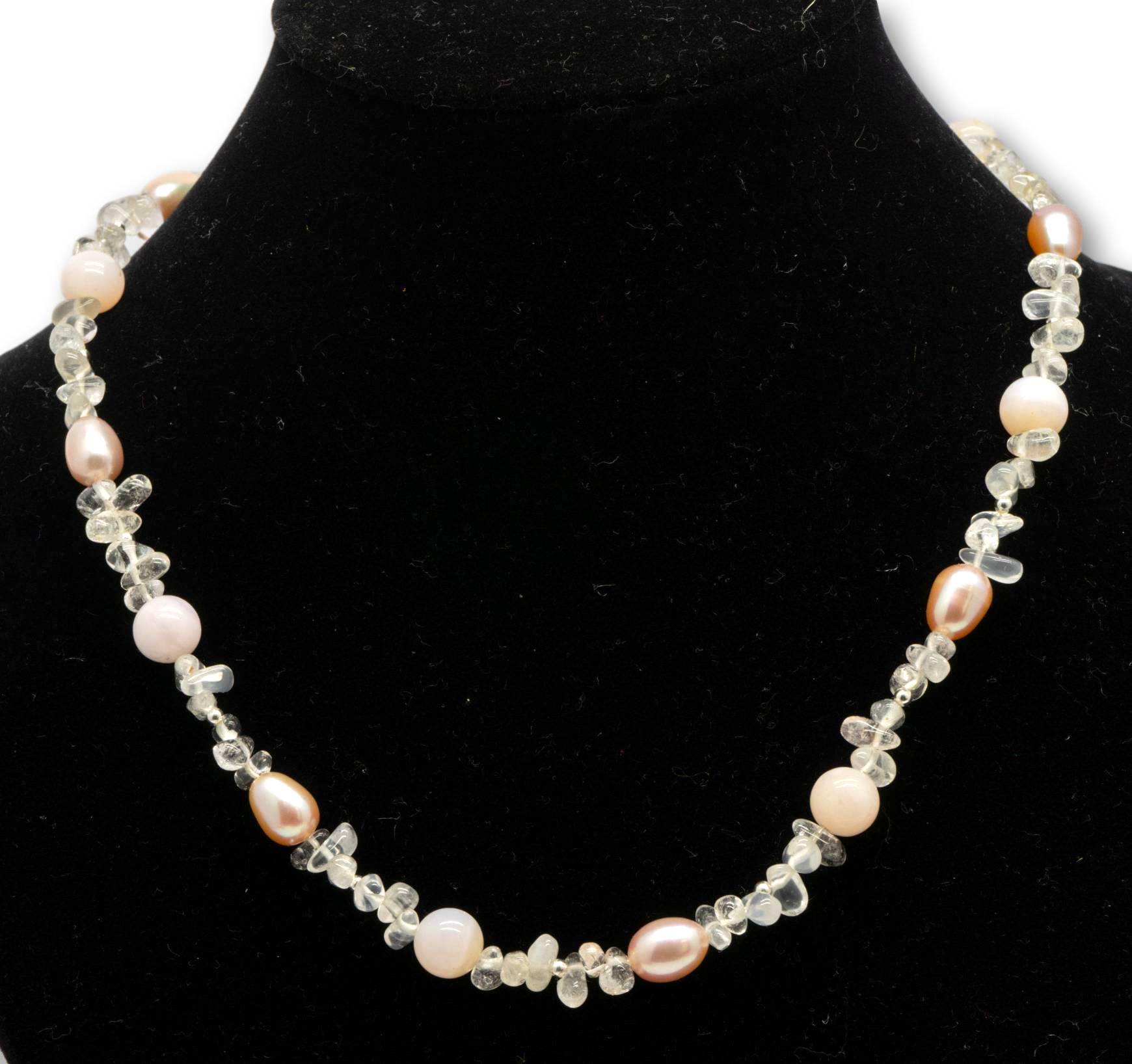 Zarte Kombination aus Rosenquarz, Andenopal & Süßwasserperlen