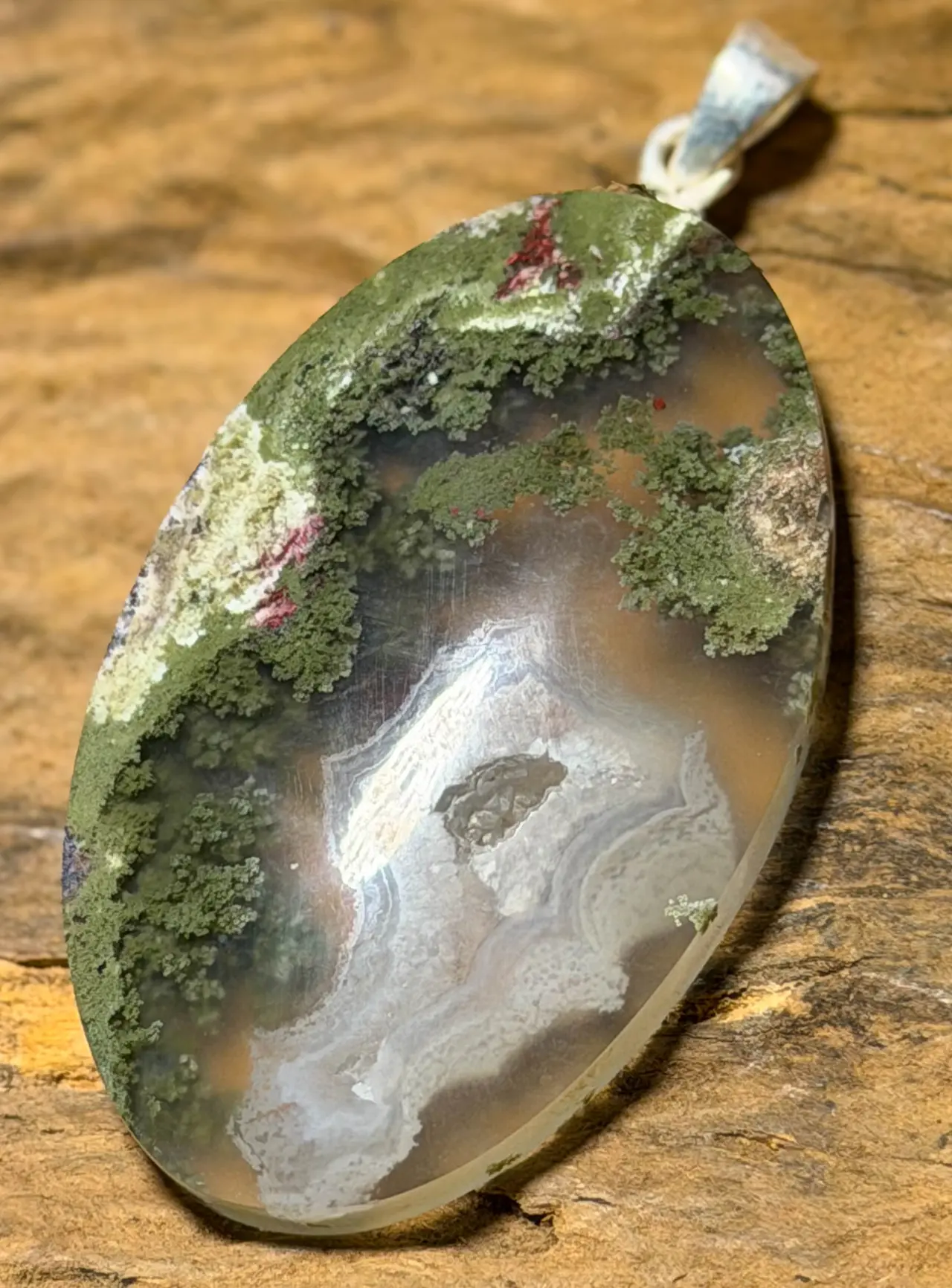 Moosachat Anhänger – mit 925er Silberöse (47 x 24 mm)