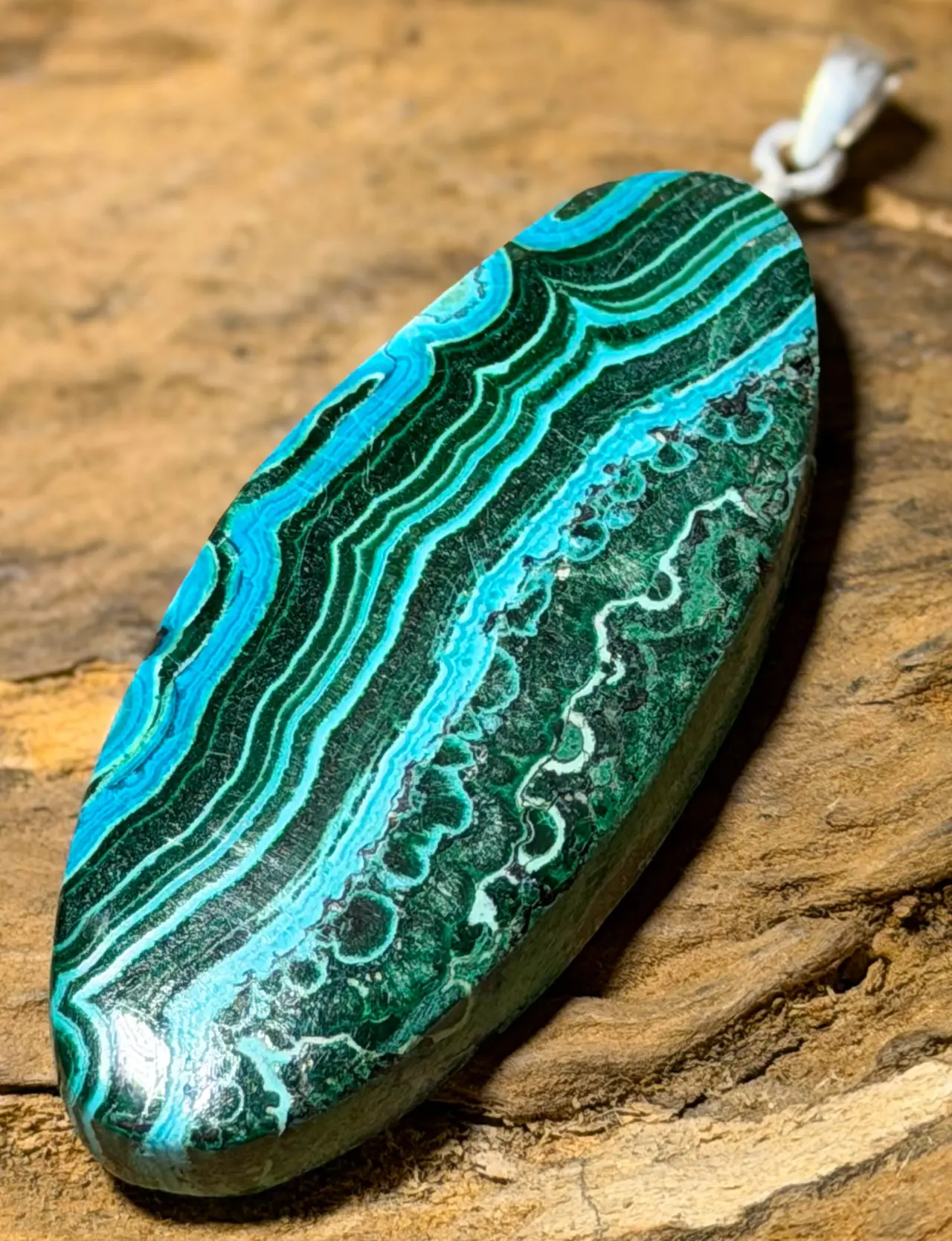 Malachit-Chrysokoll Anhänger – mit 925er Silberöse (55 x 20 mm)