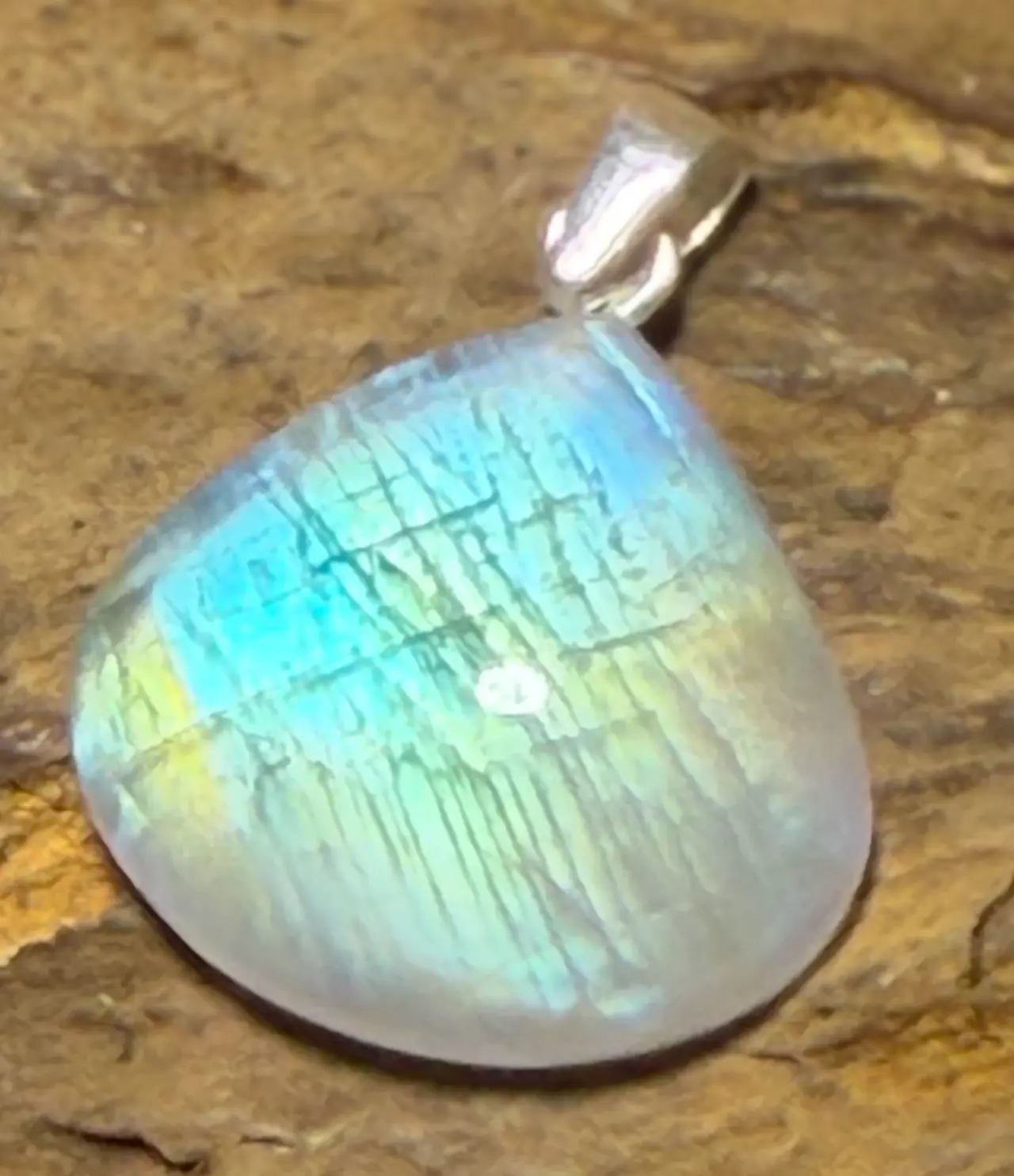 Regenbogenmondstein Anhänger – mit 925er Silberöse (25 x 20 mm)