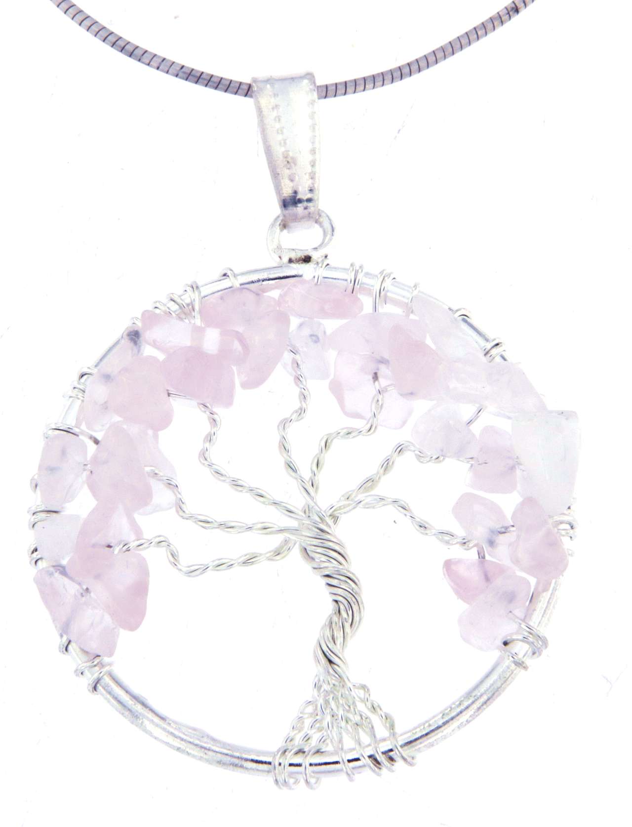 Anhänger „Lebensbaum mit Rosenquarz“ – versilbert mit 925er Silber