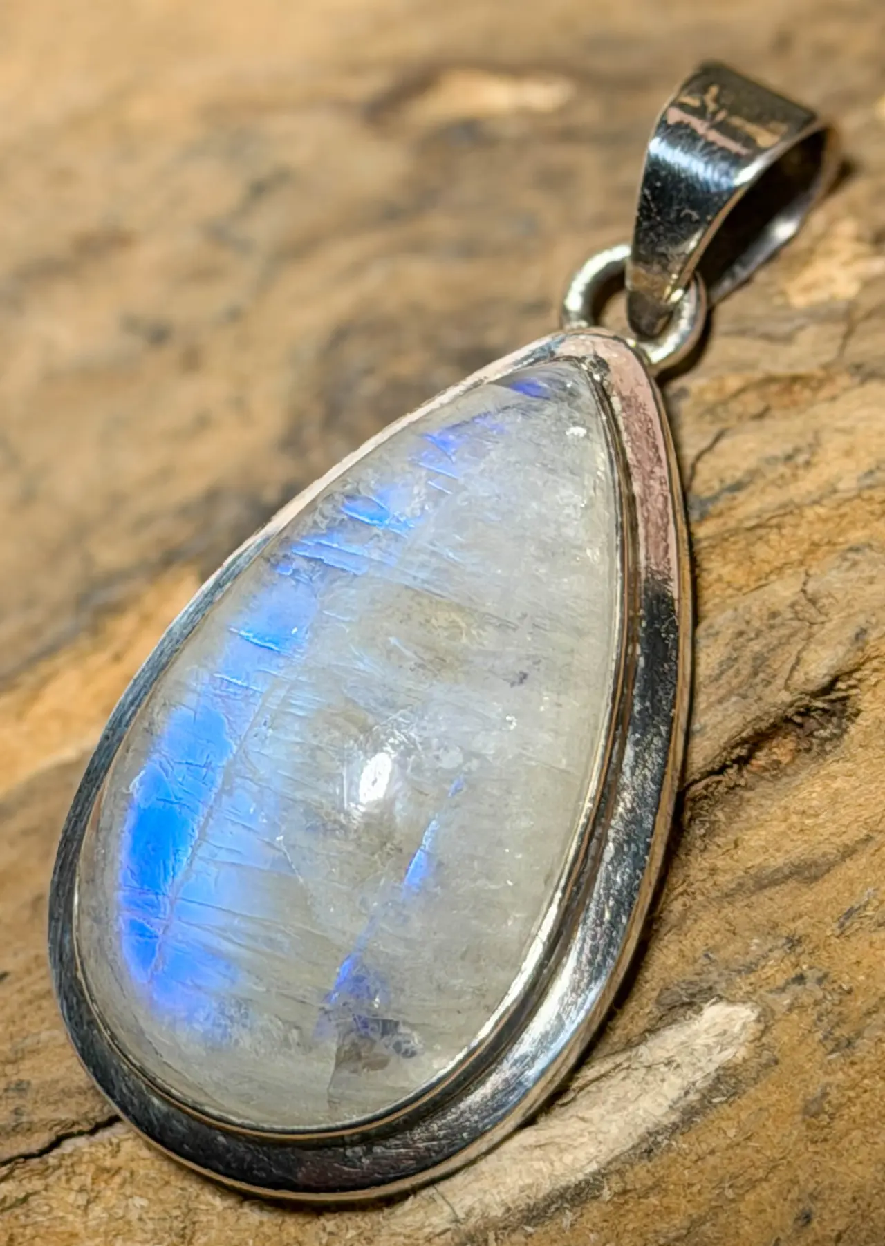 Anhänger „Regenbogenmondstein“ – 925 Sterling Silber mit Stoffband