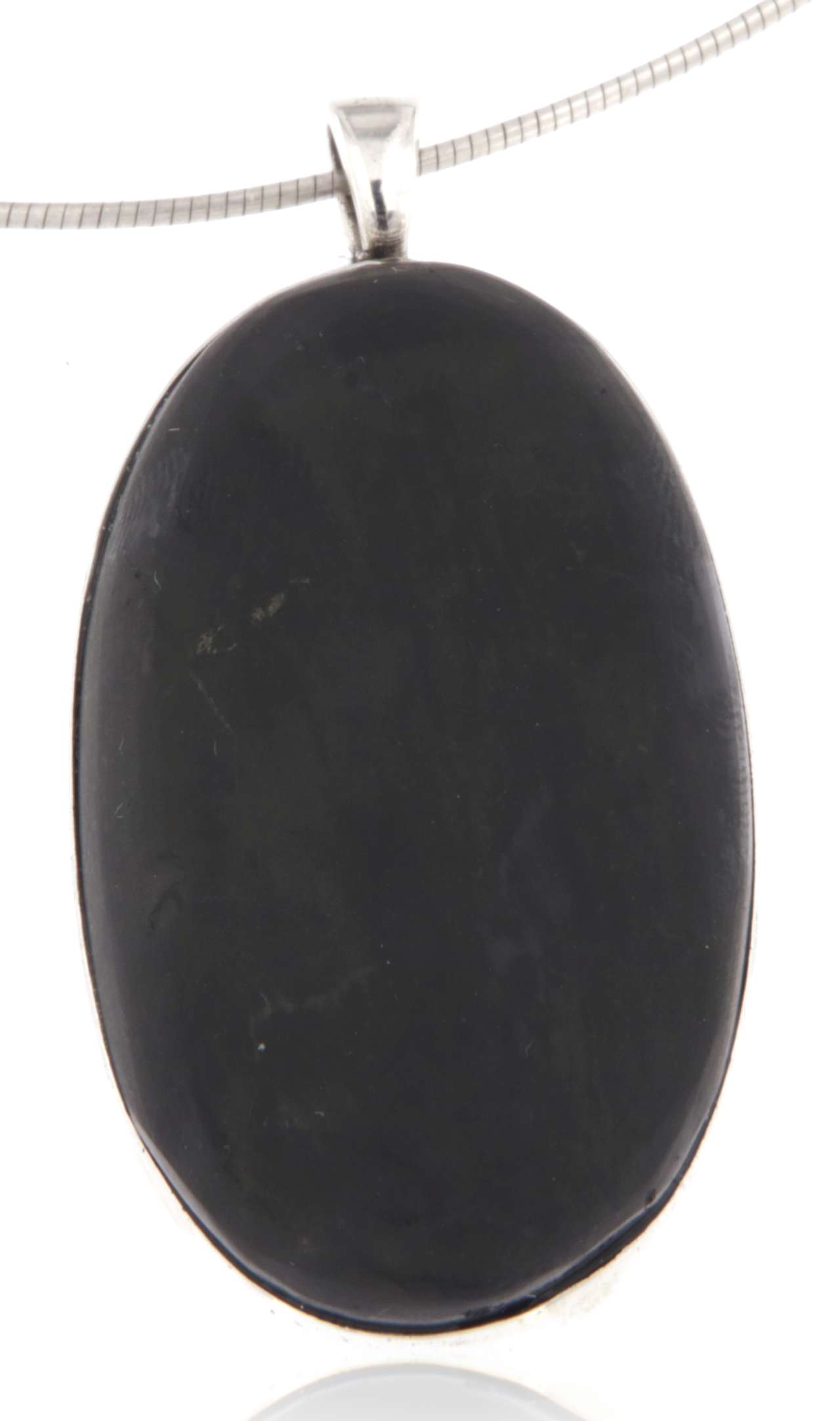 Anhänger „Schungit“ – 935er Silber mit Stoffband