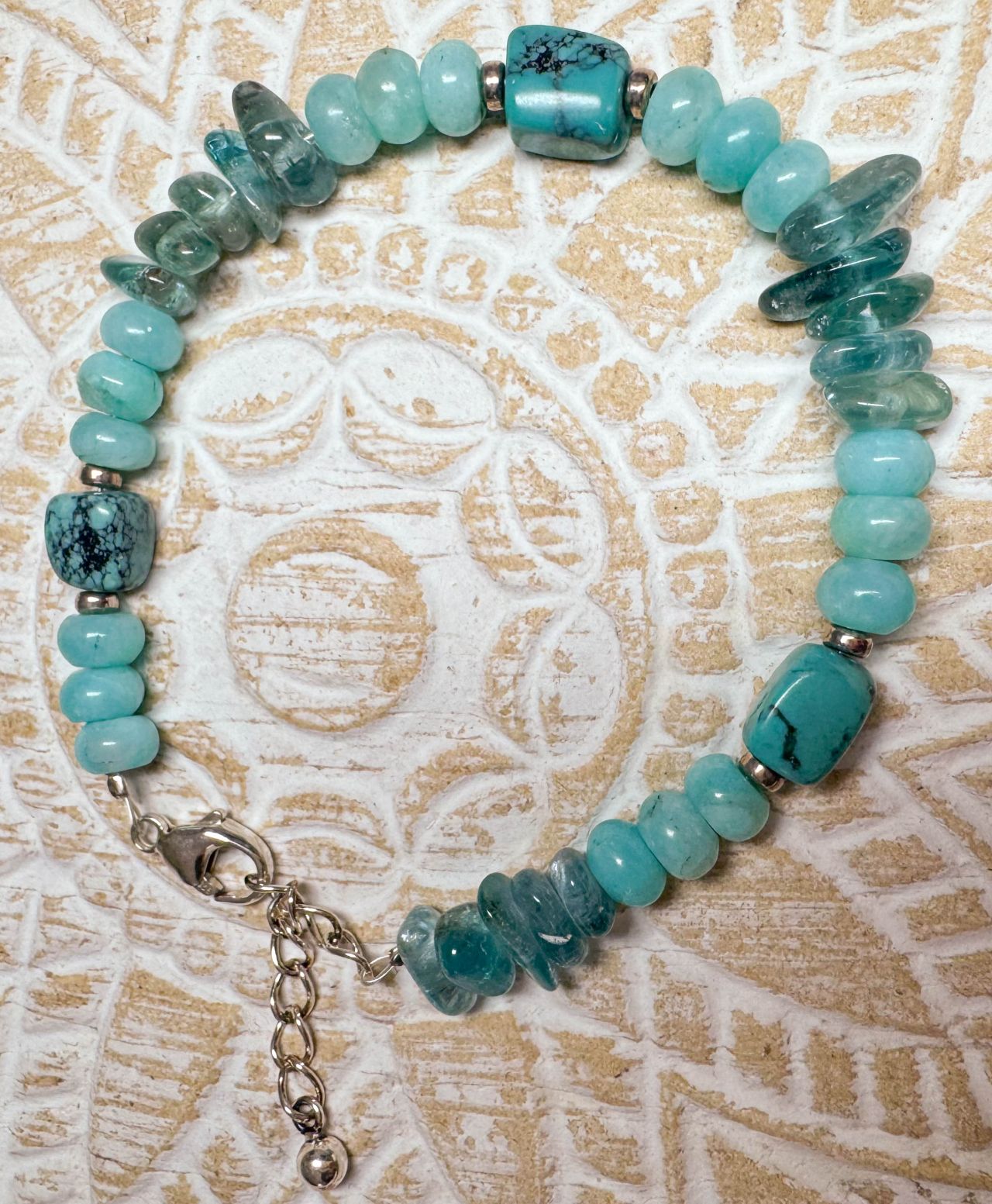 Apatit - Amazonit - Türkis Edelstein Armband - Edelsteinarmband 925er Silber Schmuck #0305