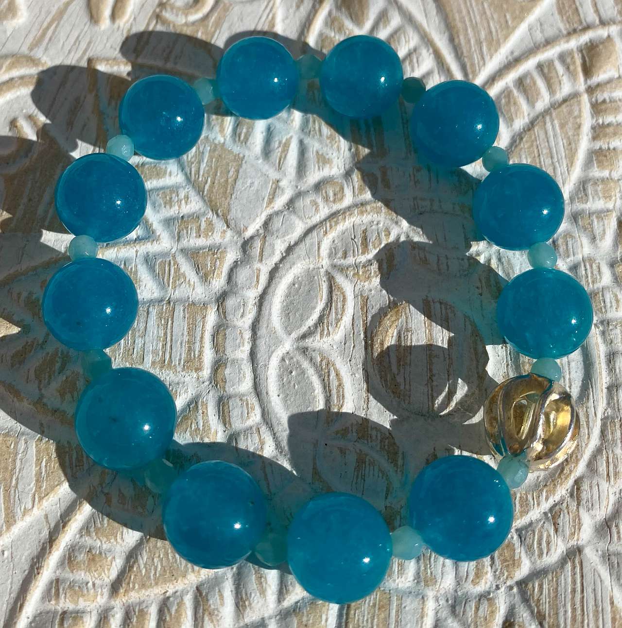 Du erhältst das abgebildete Amazonit Armband – handverlesen, individuell und stilvoll.