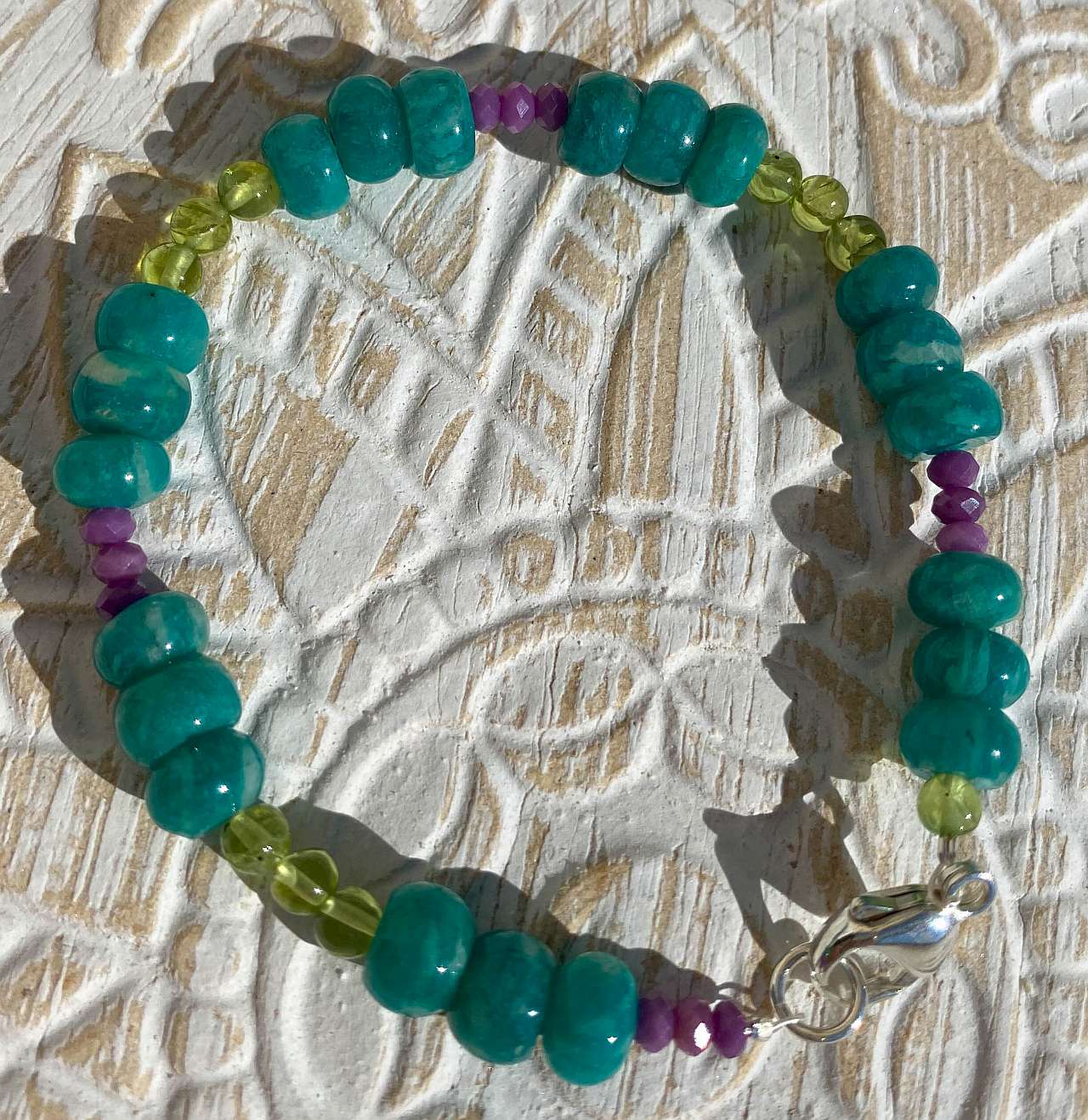 Amazonit – Peridot – Phosphosiderit Edelstein Armband – 925er Silber