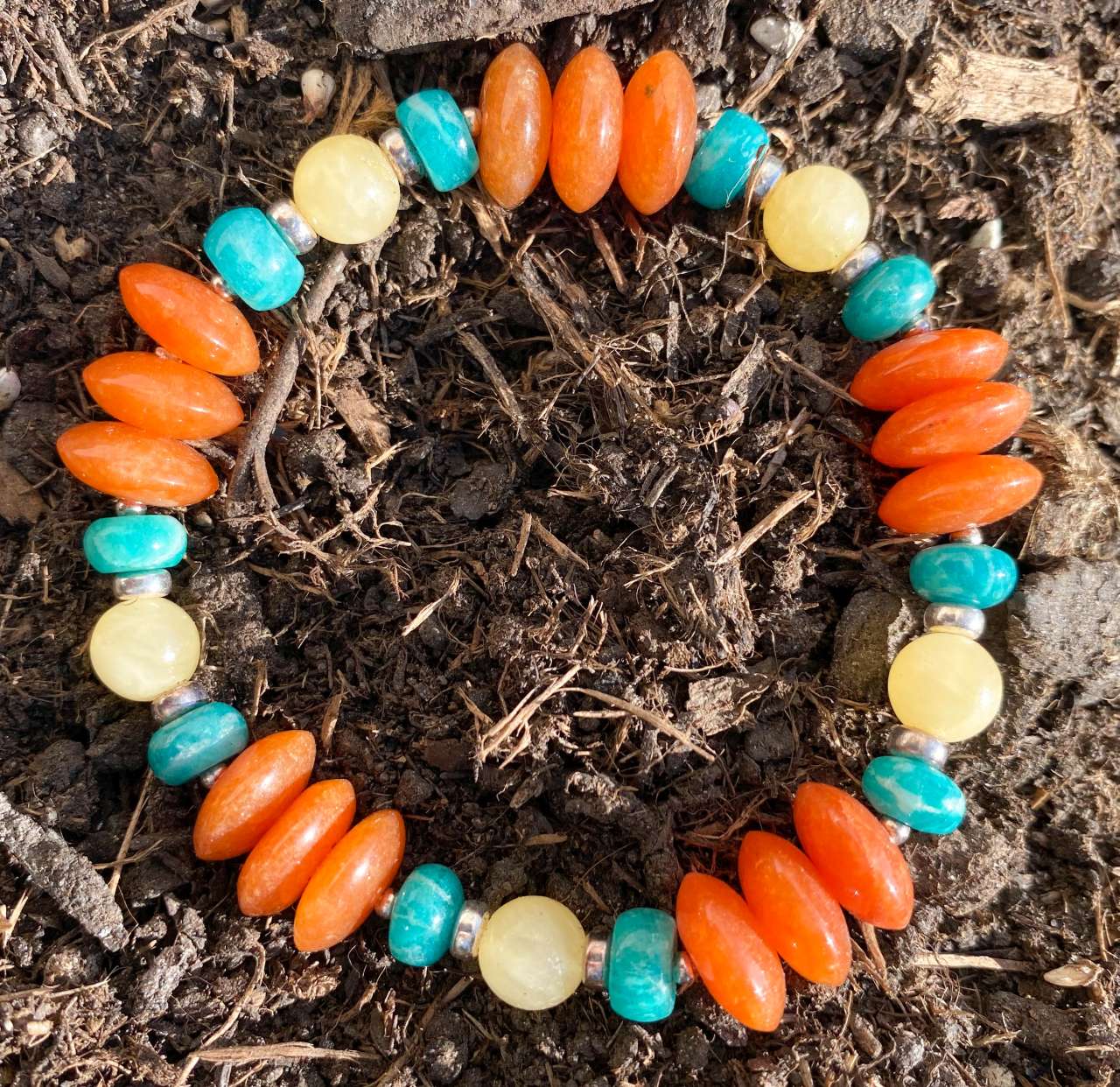 Orangencalcit - Calcit rot - Amazonit Edelstein Armband – Handgefertigtes Unikat MADE in Germany