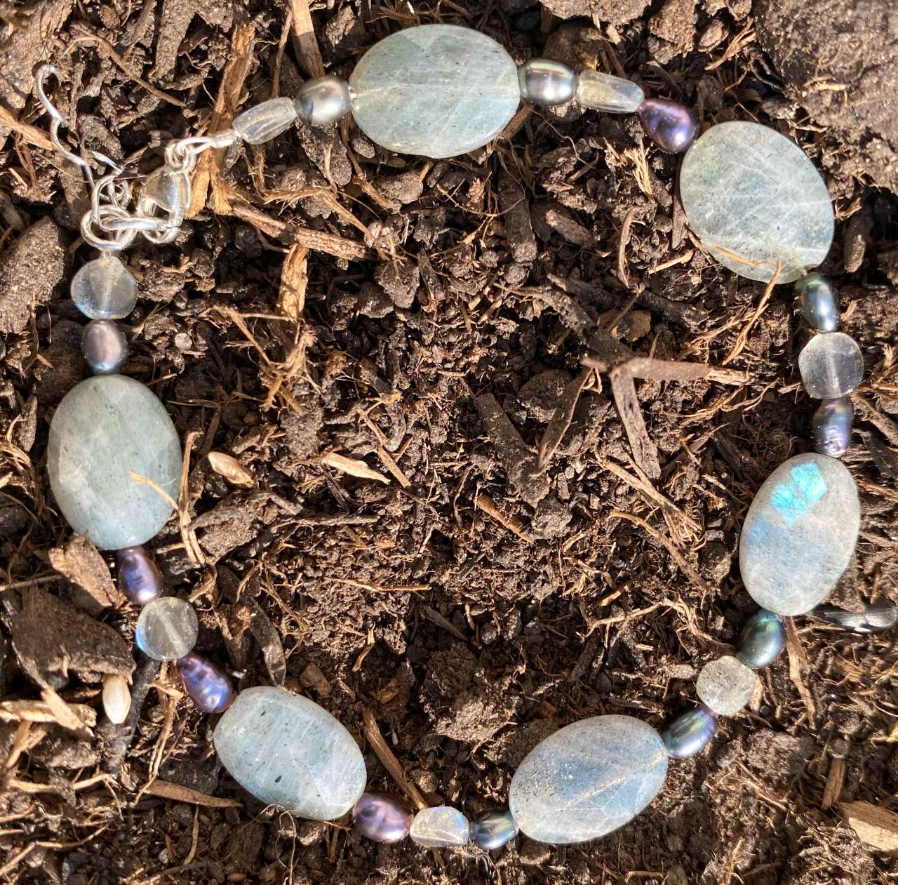 Labradorit – Süßwasserperle Edelstein Armband – Handgefertigtes Unikat