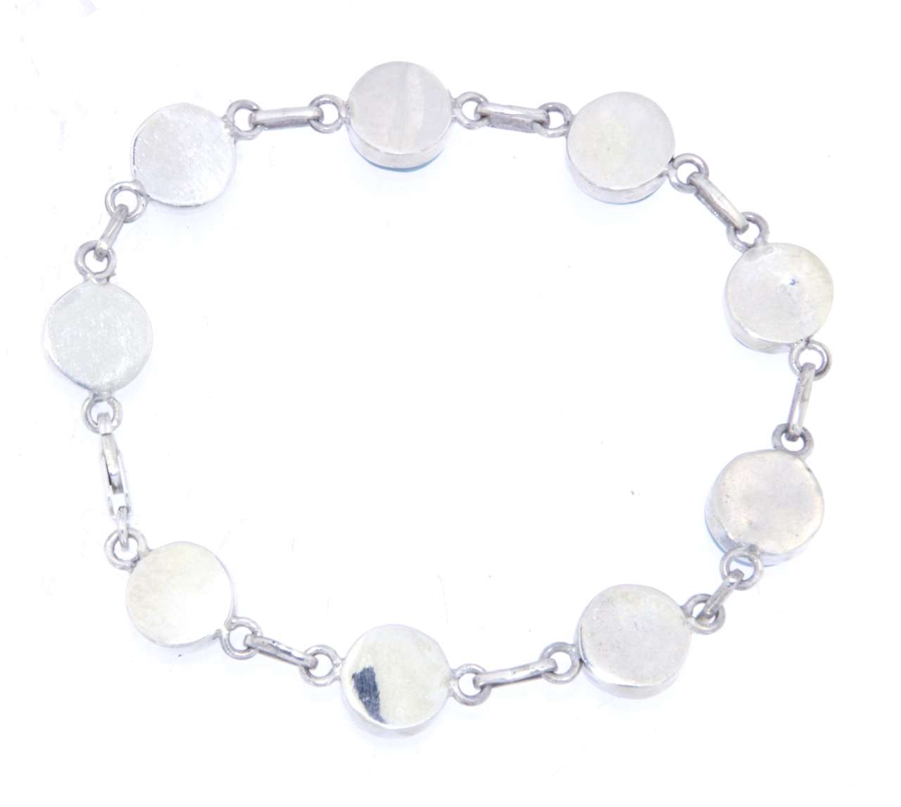 Dieses exklusive Armband kombiniert Larimar Cabochons mit einer hochwertigen Silber-Gliederkette. Die Rückseite der Larimar Steine ist geschlossen, wodurch die natürliche Schönheit der Steine perfekt zur Geltung kommt. Der Karabinerverschluss sorgt für sicheren Halt und das Armband passt sich ideal dem Handgelenk an.