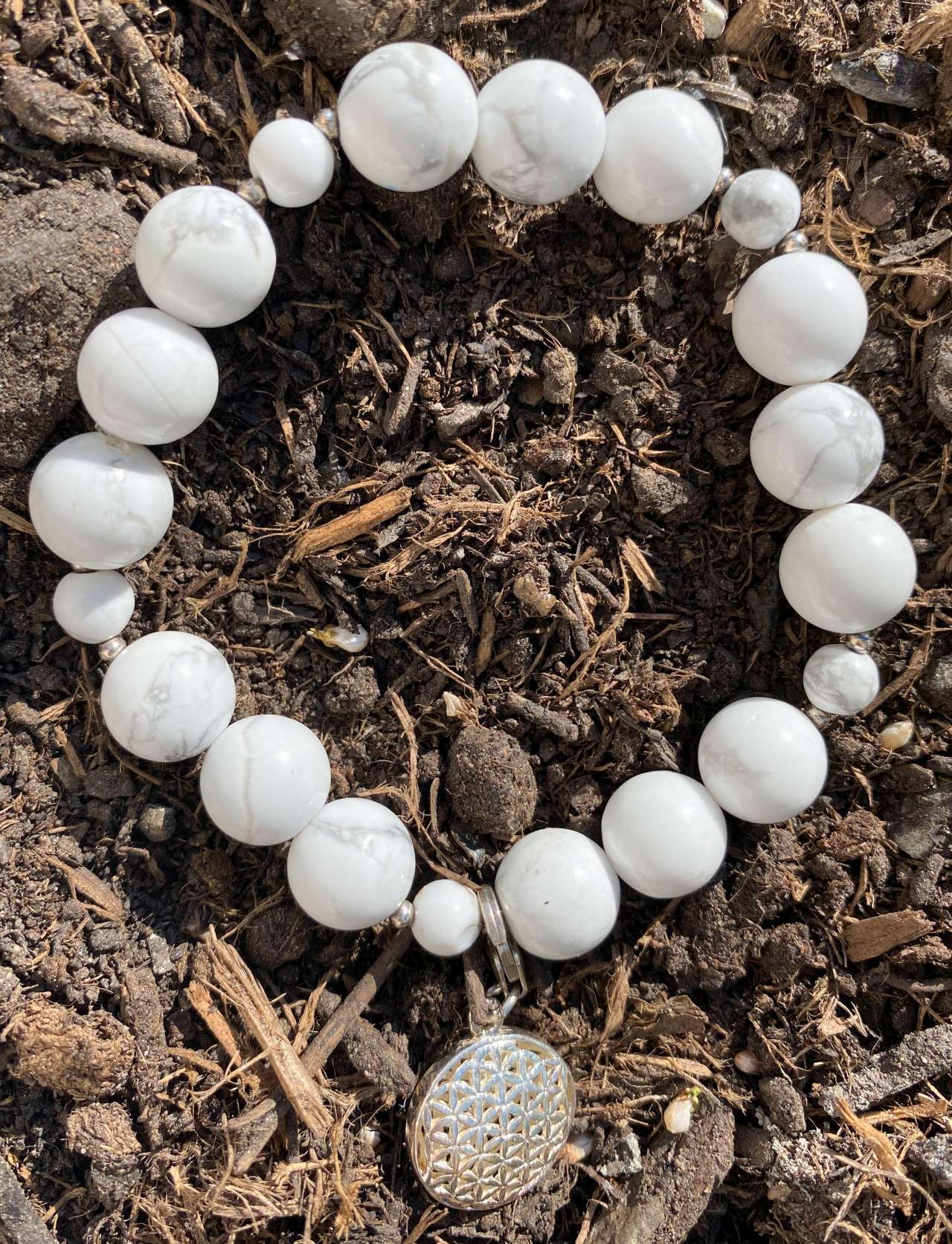 Magnesit Edelstein Armband – Blume des Lebens – 925er Silber – Handgefertigtes Unikat