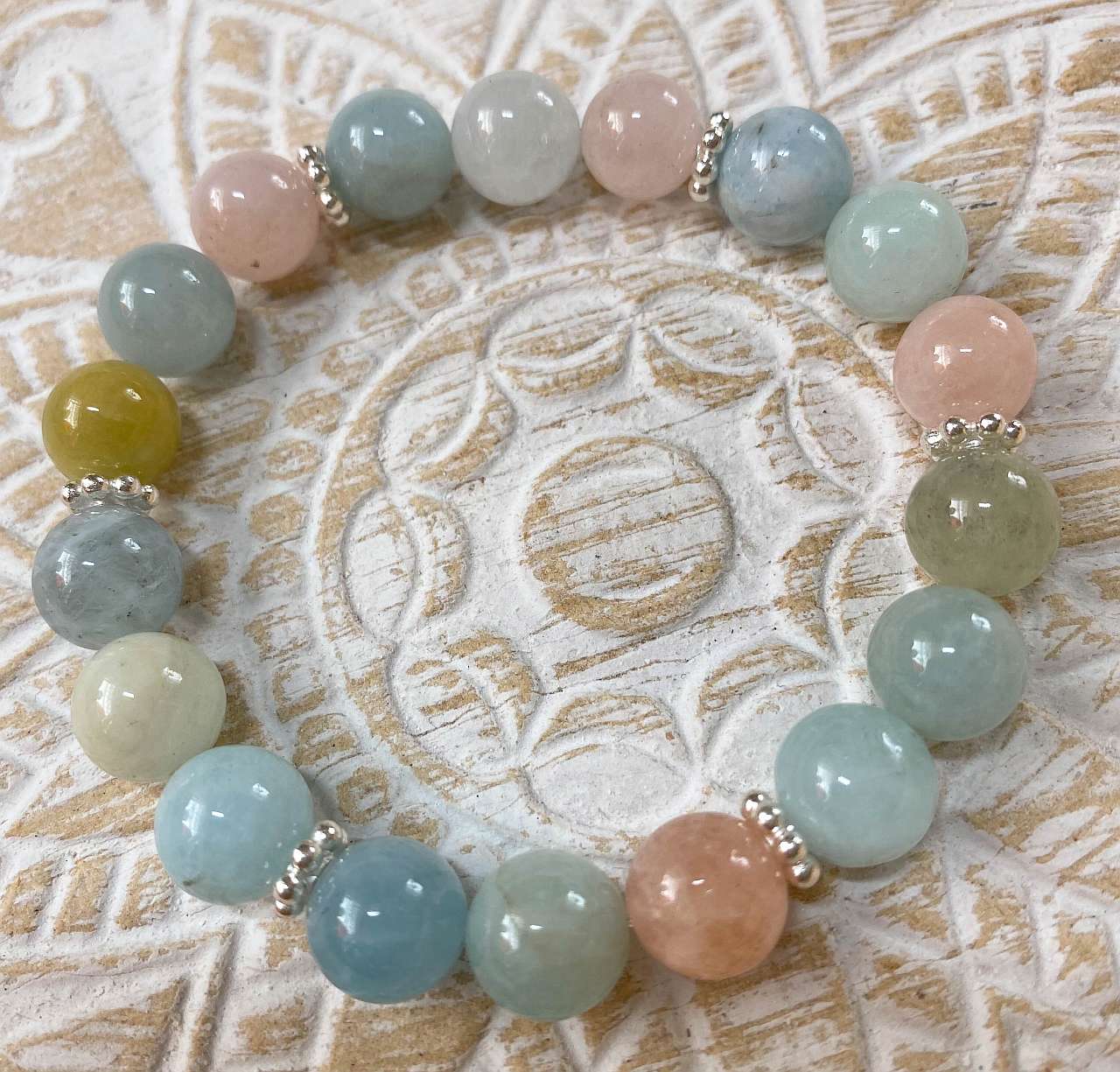 Aquamarin – Morganit – Heliodor Edelstein Armband – 925er Silber