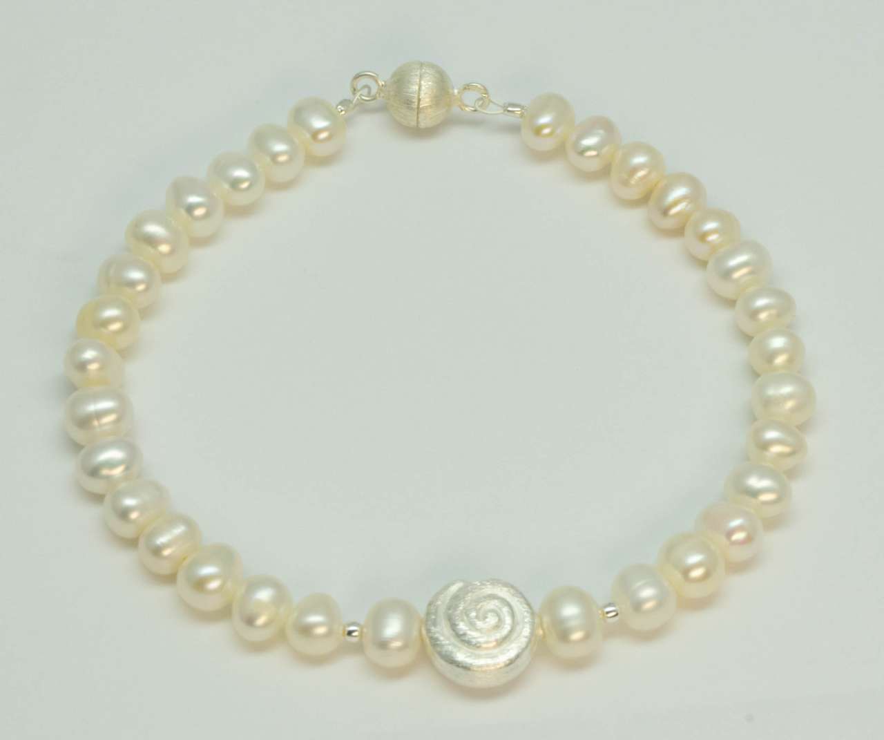 Dieses elegante Armband besteht aus Süßwasserperlen und wird auf einem starken, reißfesten Silberdraht aufgereiht, sodass es sich ideal an das Handgelenk anschmiegt. Der praktische Magnetverschluss ermöglicht ein einfaches An- und Ablegen.