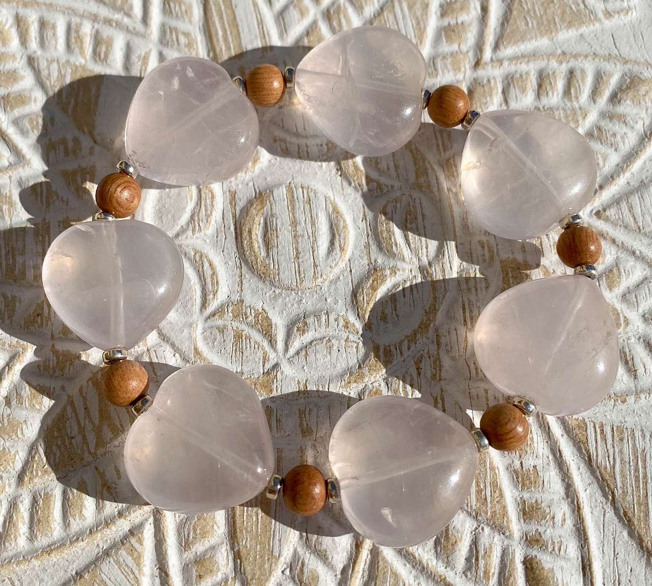 Edelsteine: Rosenquarz Herz, Holzperle