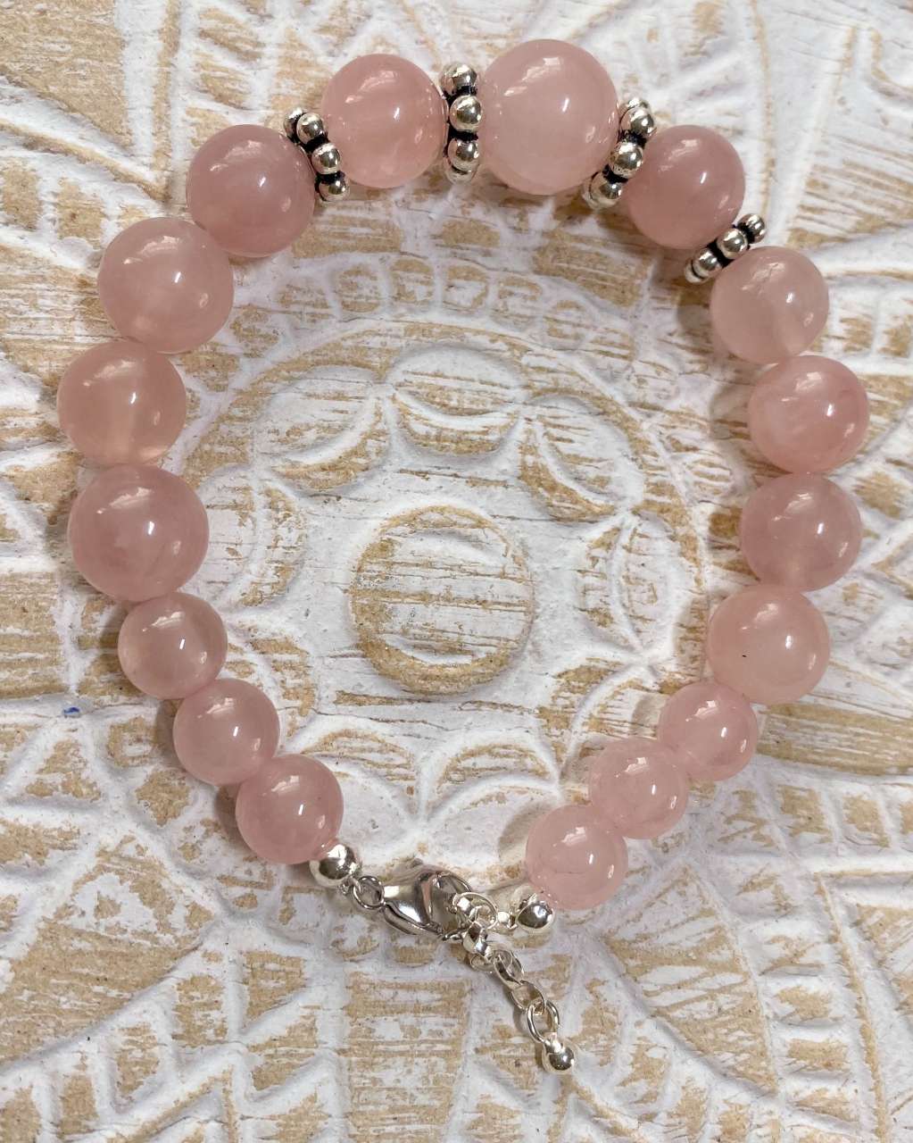 Rosenquarz Edelstein Armband – 925er Silber, handgefertigt, Unikat MADE in Germany