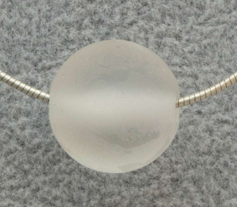 Dieser edle Kugel-Anhänger aus mattiertem Bergkristall überzeugt durch seine seidig-weiße Oberfläche und die ruhige, klare Ausstrahlung des Natursteins.