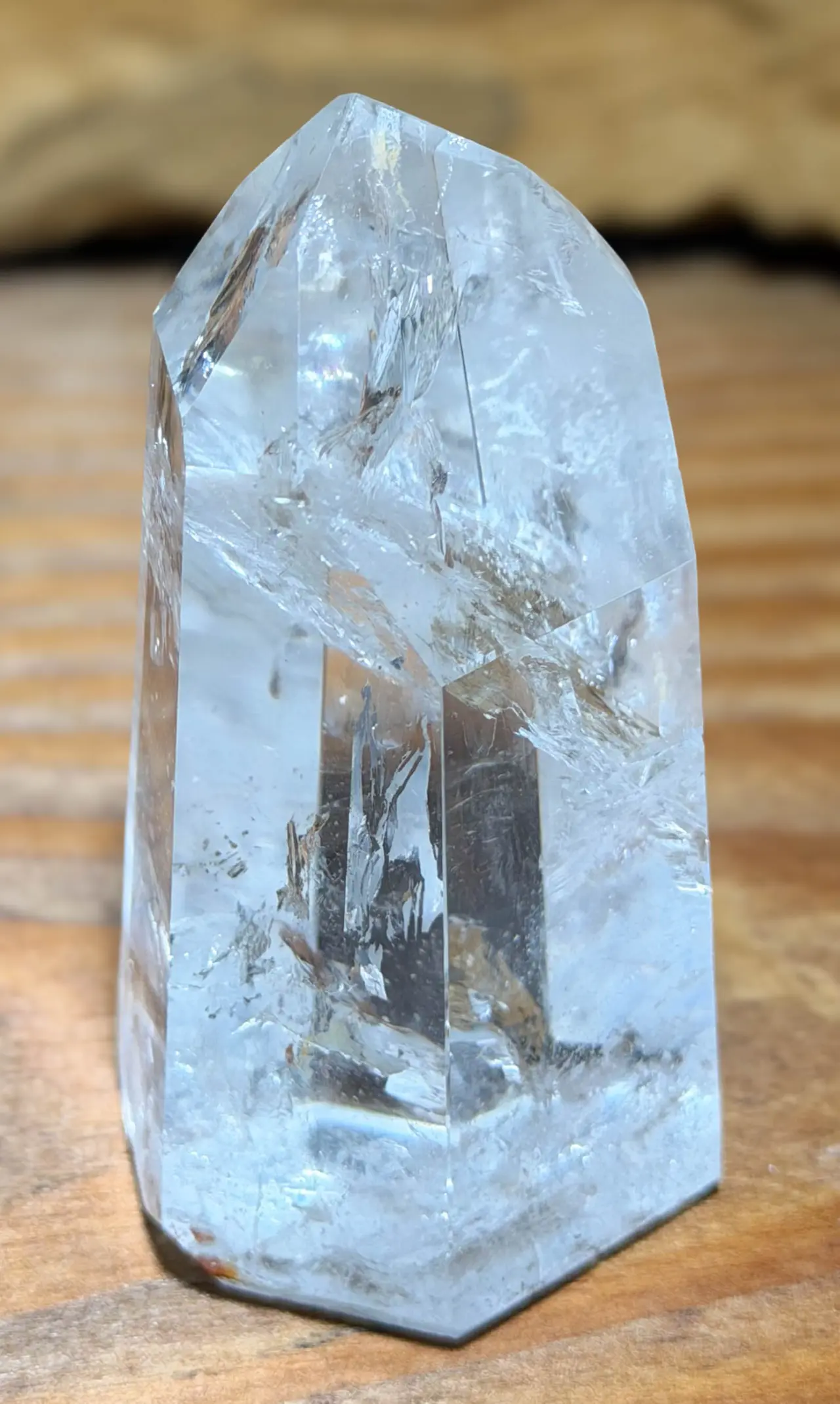 Die Spitze wurde präzise geschliffen und aufwendig poliert, sodass ihre kristalline Struktur optimal zur Geltung kommt. Lichtreflexe, natürliche Einschlüsse und das Transparenzspiel verleihen diesem Stück eine besondere Lebendigkeit – jedes Detail macht die Spitze zu einem echten Einzelstück der Natur.