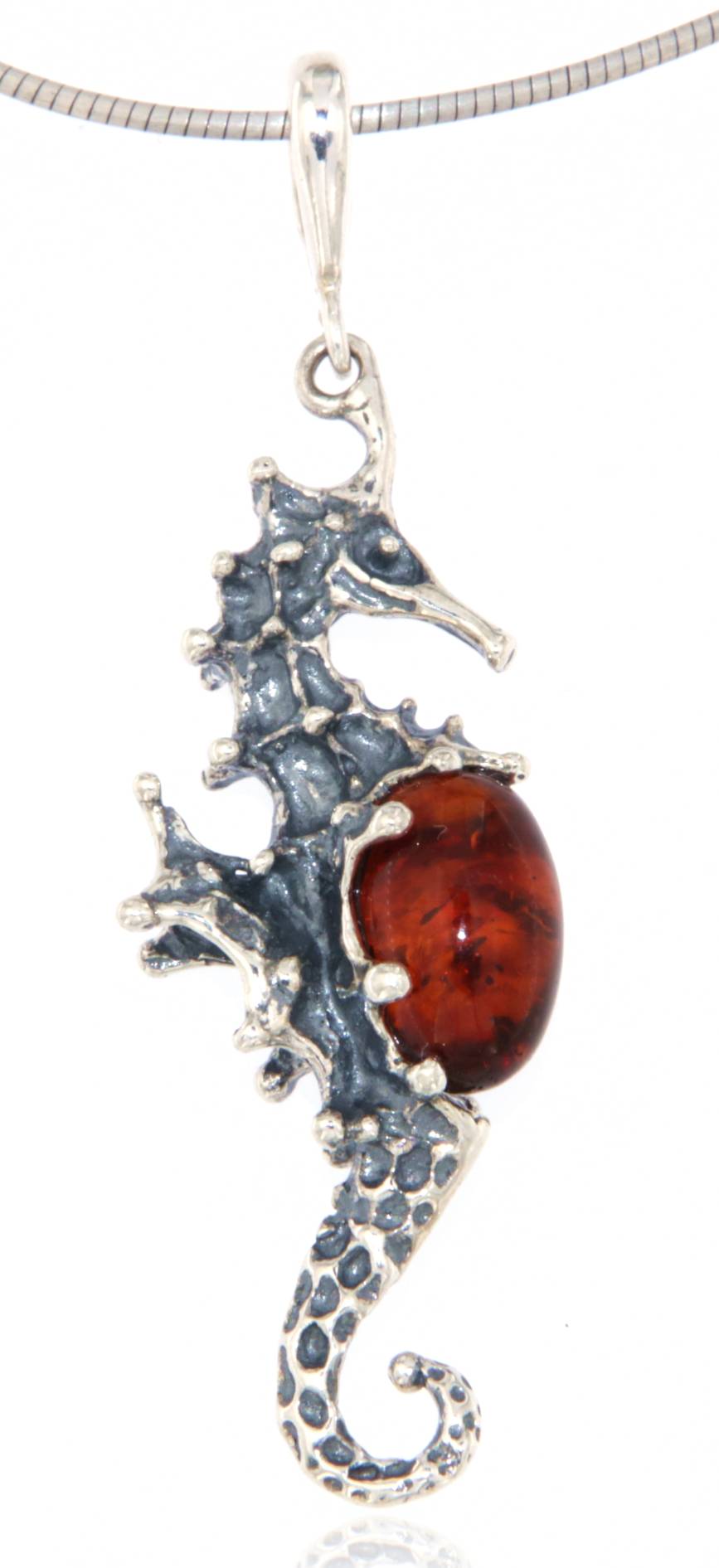 edler Seepferd Anhänger Bernstein A Qualität - 925er Silber #5089