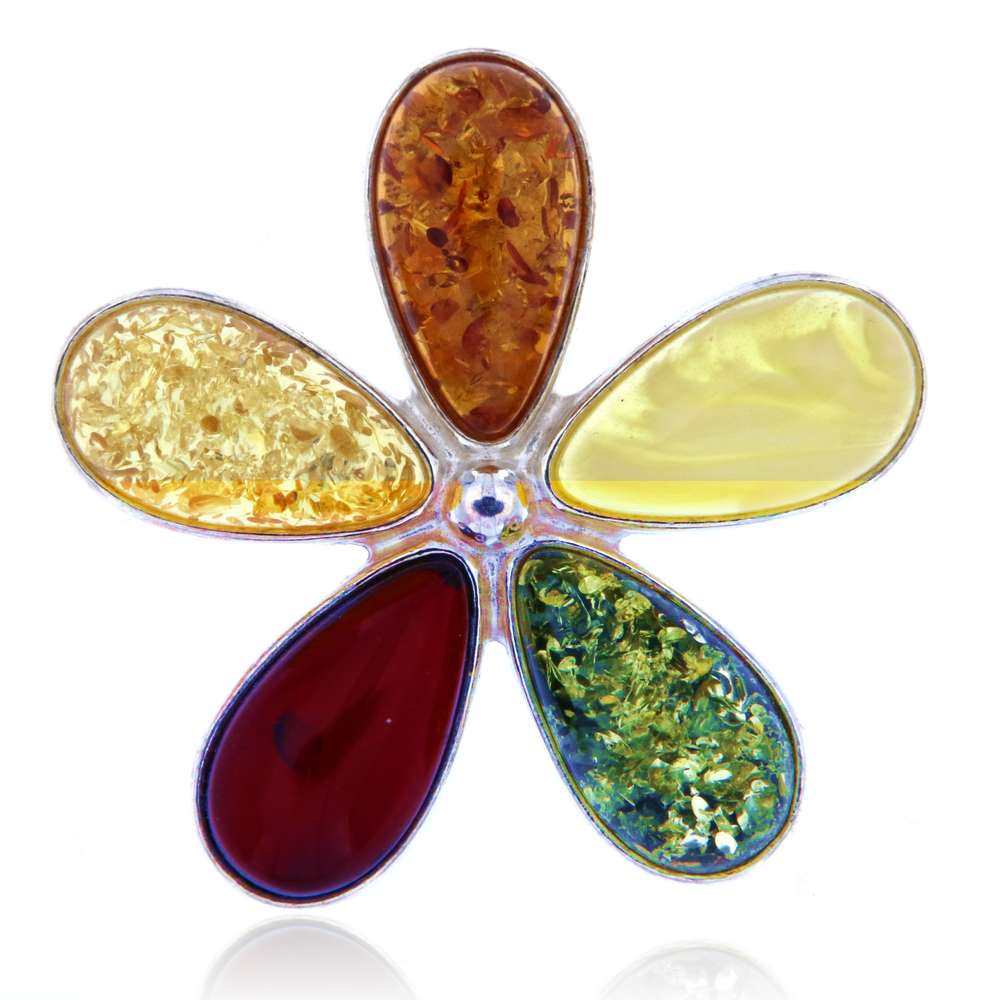 Ein edler Blumen Anhänger mit echtem baltischem Bernstein, kunstvoll gefertigt aus hochwertigem 925er Sterlingsilber. Die detailreiche Blütenform kombiniert mit den warm leuchtenden Bernsteinen in verschiedenen Farbtönen verleiht diesem Schmuckstück eine harmonische und elegante Ausstrahlung.