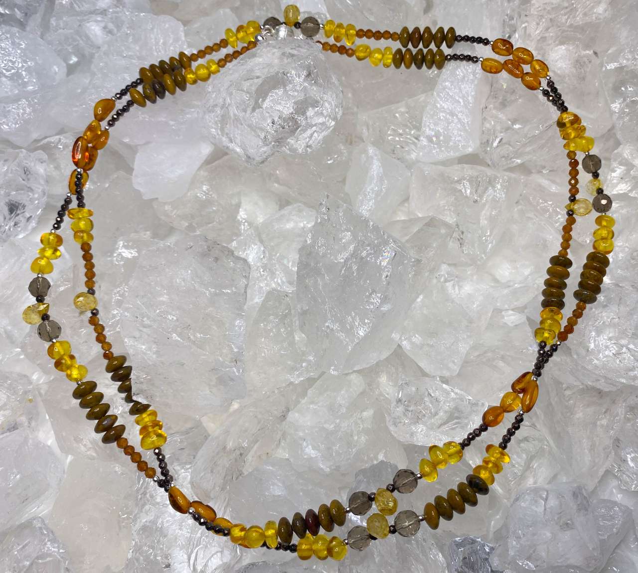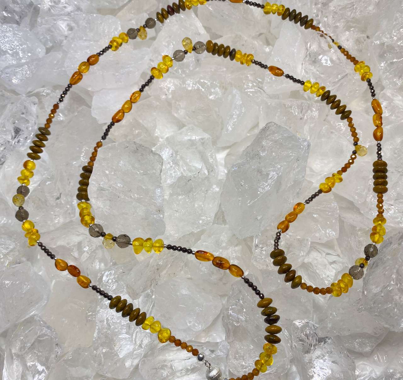 Edelstein-Collier aus Bernstein, Citrin & Rutilquarz – handgefertigt mit 925er Silber