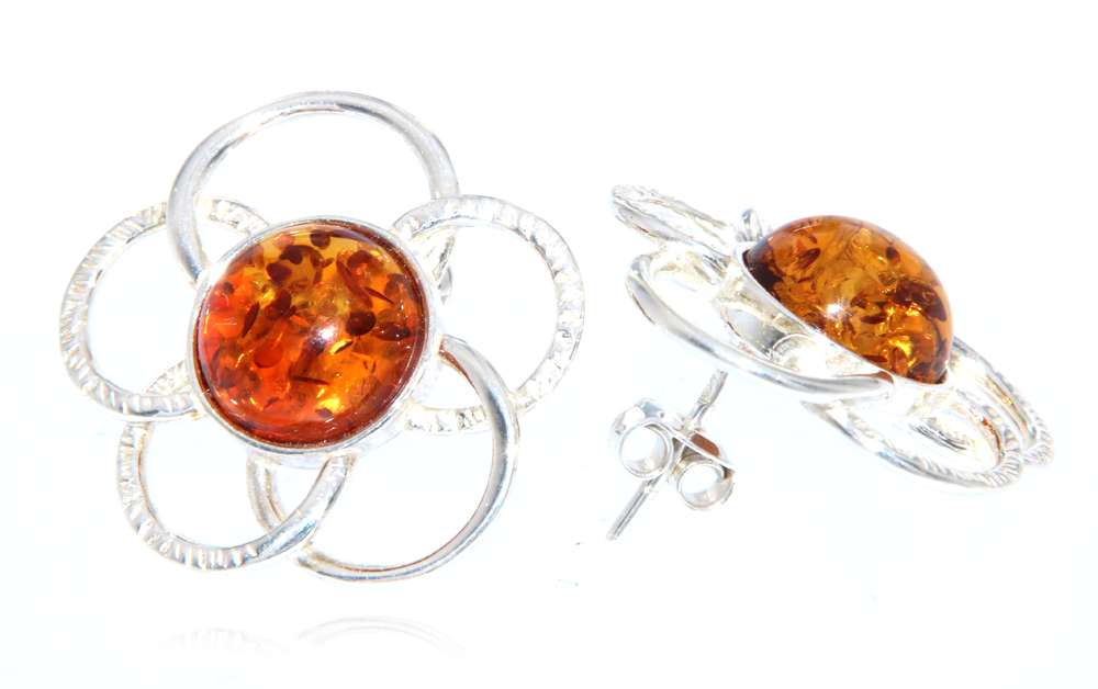 Ohrringe „Blume“ mit Bernstein – 925 Sterling Silber