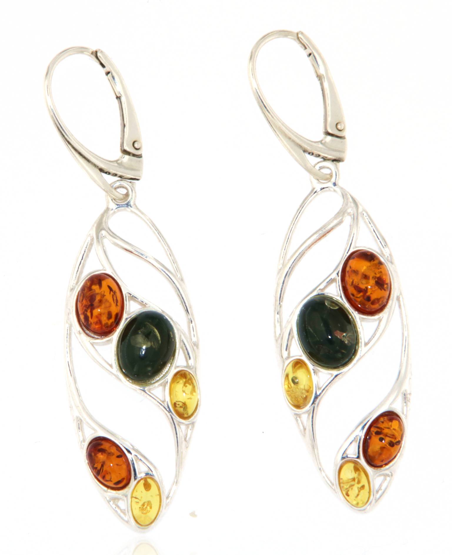Diese edlen Ohrringe mit echtem baltischem Bernstein vereinen klassisches Design mit natürlicher Eleganz. Gefertigt aus hochwertigem 925er Sterlingsilber, präsentieren sie harmonisch schimmernde Bernsteine in den warmen Farbtönen gelb, grün und orange – eine stilvolle Kombination, die Natürlichkeit und Raffinesse perfekt verbindet.