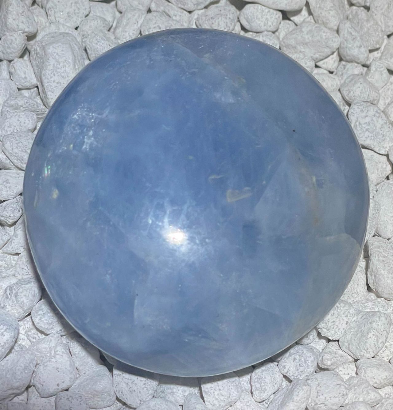 Mit einer Größe von ca. 60 × 60 × 30 mm liegt der Stein angenehm in der Hand. Durch seine harmonische, abgerundete Form und die große, glatte Fläche eignet er sich ideal als Handschmeichler, Auflagestein oder Massagestein. Blauer Calcit gilt als Stein der Ruhe und Inspiration – er hilft, Stress zu lösen, emotionale Klarheit zu finden und die Kommunikation zu stärken.