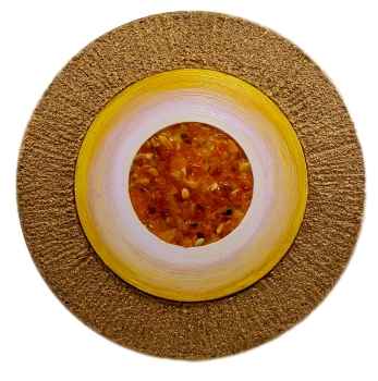 Mit einem Durchmesser von ca. 20 cm eignet sich die Edelsteinsonne perfekt als Wandobjekt, Blickfang im Wohnraum, Meditations- oder Kraftobjekt.