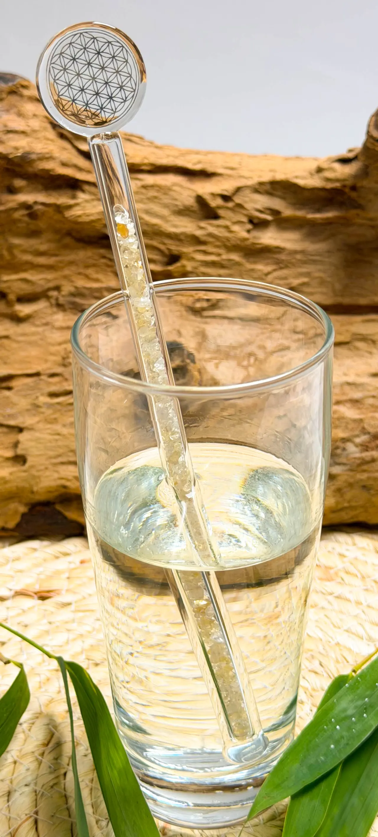 Der Premium Vital Crystal Water Stick – Citrin Blume des Lebens ist eine edle und stilvolle Möglichkeit, Ihr Trinkwasser mit der Energie von Licht und Lebensfreude zu bereichern. Jeder Stab ist mit natürlichen, polierten Citrin-Steinen gefüllt und trägt das eingravierte Symbol der Blume des Lebens – ein uraltes Zeichen für Harmonie, Energiefluss und die Vollkommenheit des Lebens.