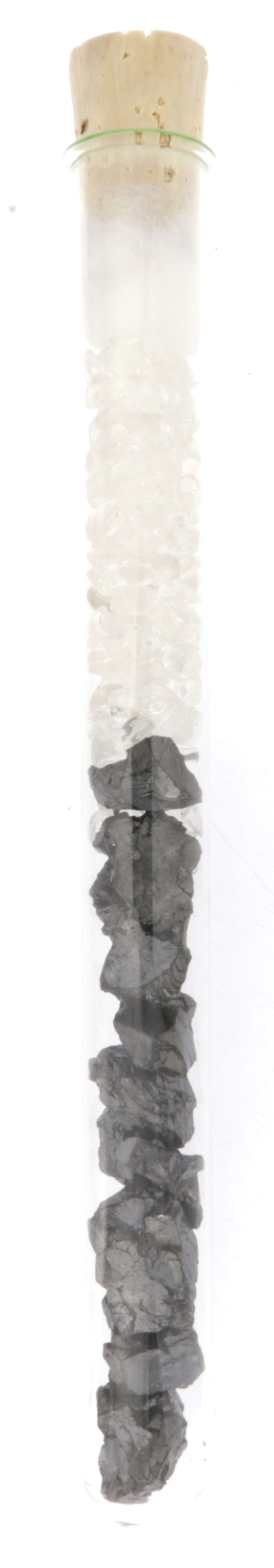 Bergkristall verstärkt die Wirkung des Edelschungits, sorgt für Klarheit und hebt die Schwingung des Wassers auf eine höhere Ebene.