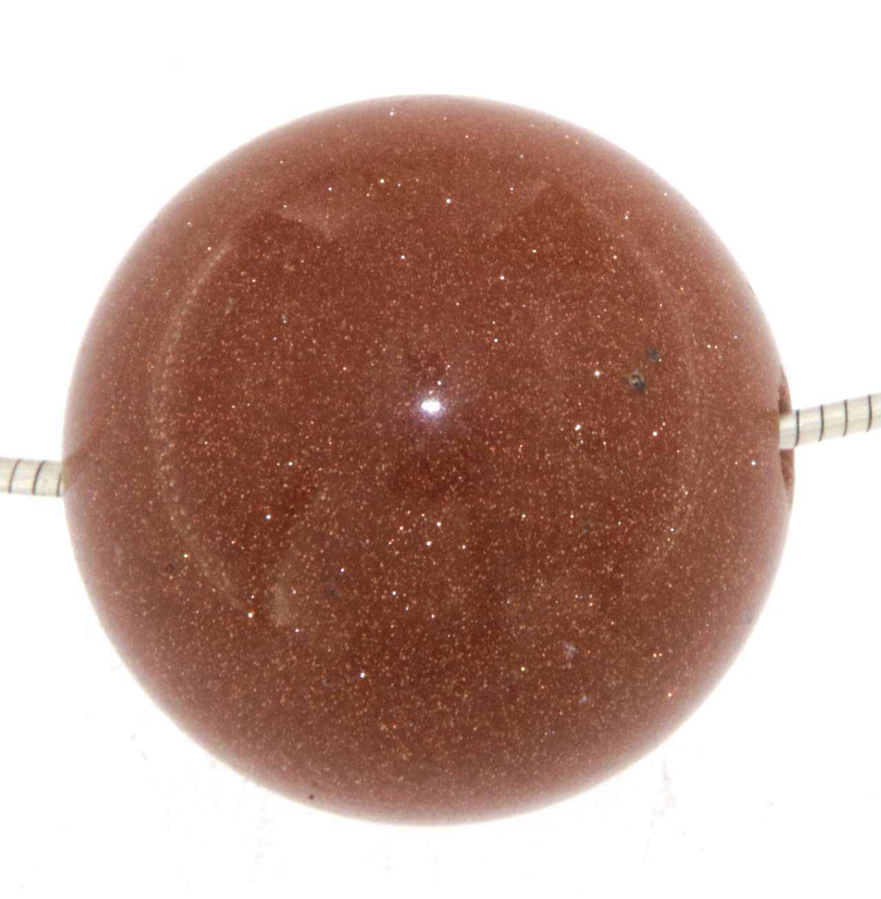 Dieser funkelnde Kugel-Schmuckanhänger aus Goldfluss zieht mit seinem tiefen Kupferton und dem feinen Glitzern unzähliger Lichtreflexe alle Blicke auf sich.