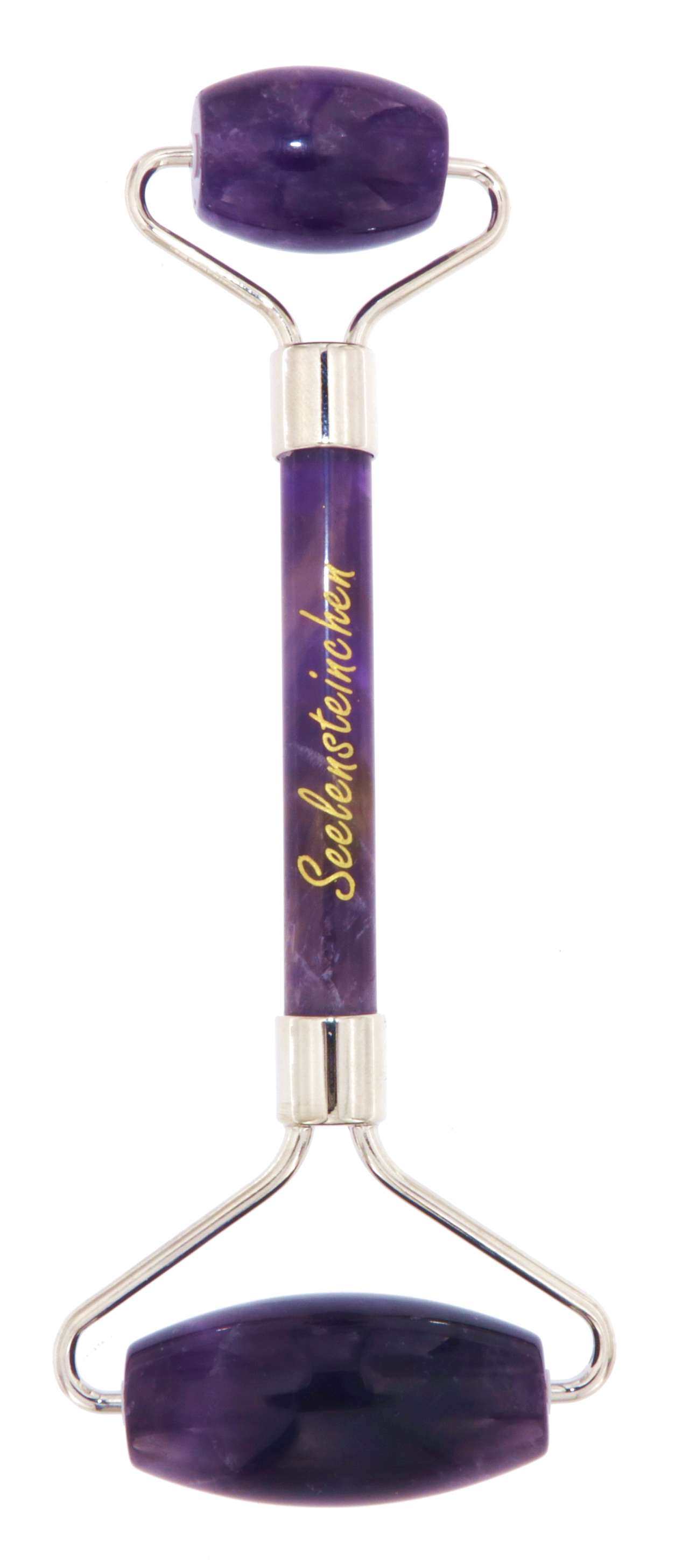 Die Edelstein Walzen und Griff der Gesichtsmassageroller (chi rollers / jade roller) sind aus Amethyst, die Halterung ist aus Metall. Unsere Crystal Roller sind was die Edelsteine / Halterung betrifft von höchster Qualität.