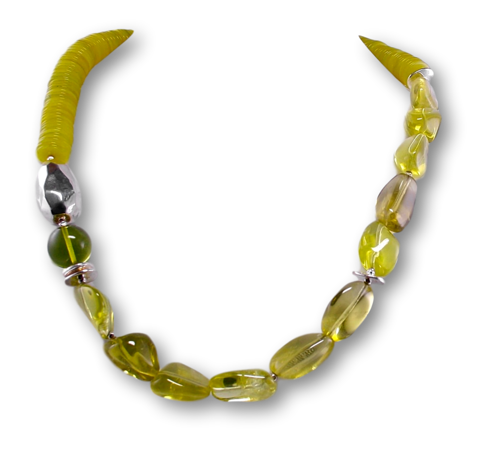 Lieferumfang: Abgebildetes Collier aus Serpentin & Lemon Quarz