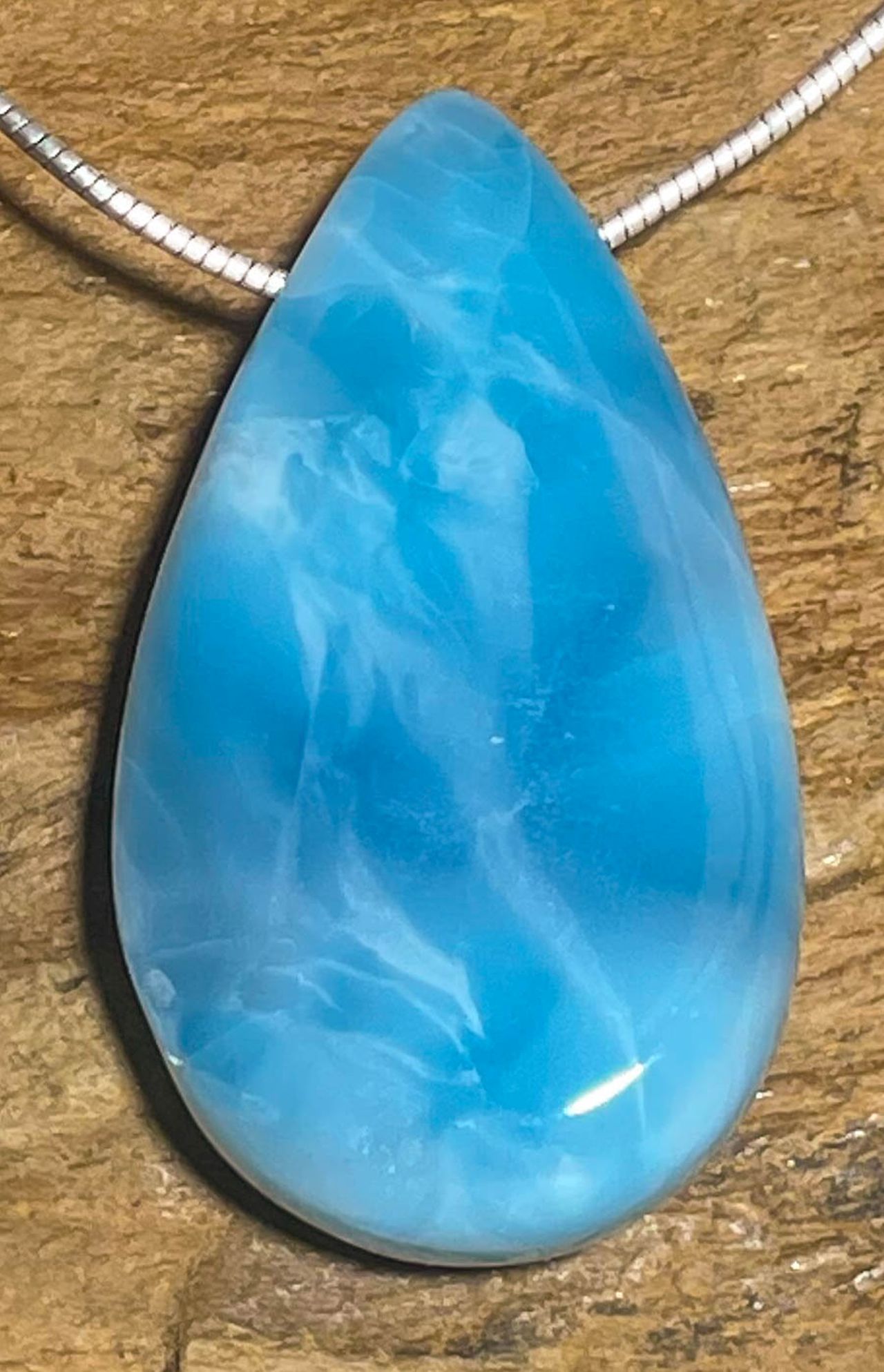 Larimar Trommelstein Anhänger Atlantisstein - Edelstein Schmuck A Qualität #7286