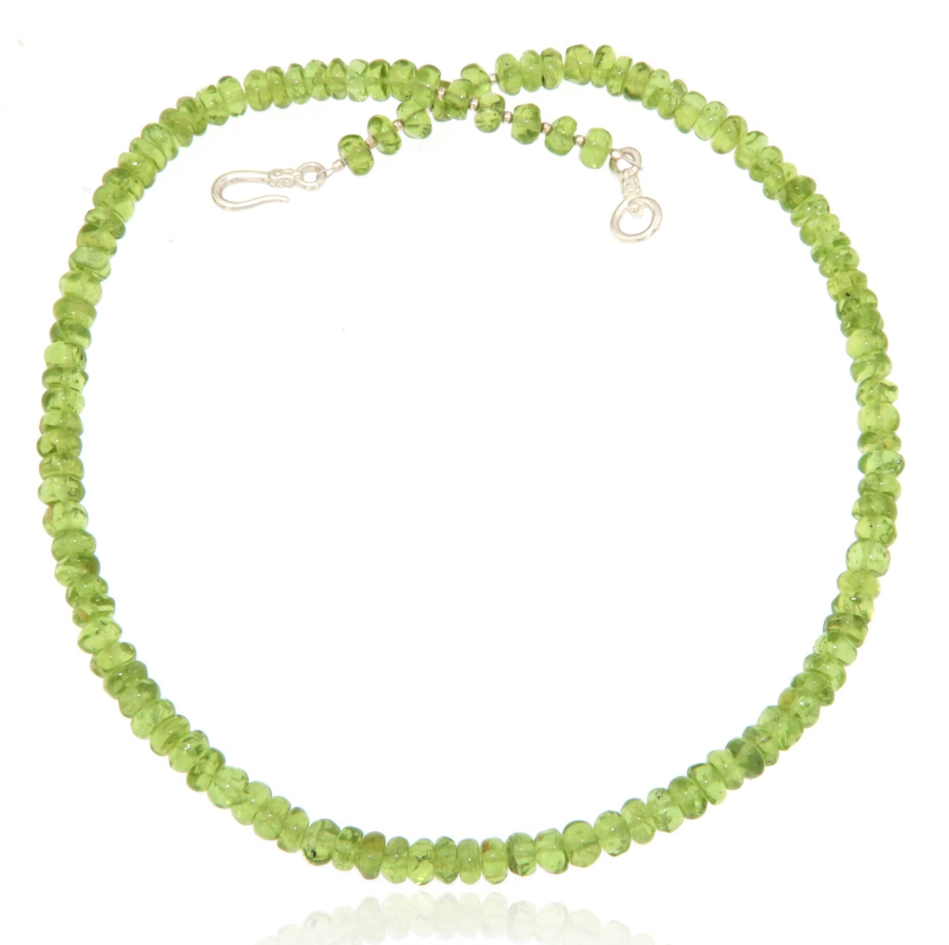 Die auserlesenen Peridot-Edelsteine sind auf einem reißfesten Silberdraht aufgezogen und sorgfältig zu einem harmonischen Gesamtbild arrangiert. Alle Zwischenteile sowie der Karabinerverschluss bestehen aus echtem 925er Sterling Silber, das dem Collier feinen Glanz und besondere Langlebigkeit verleiht.