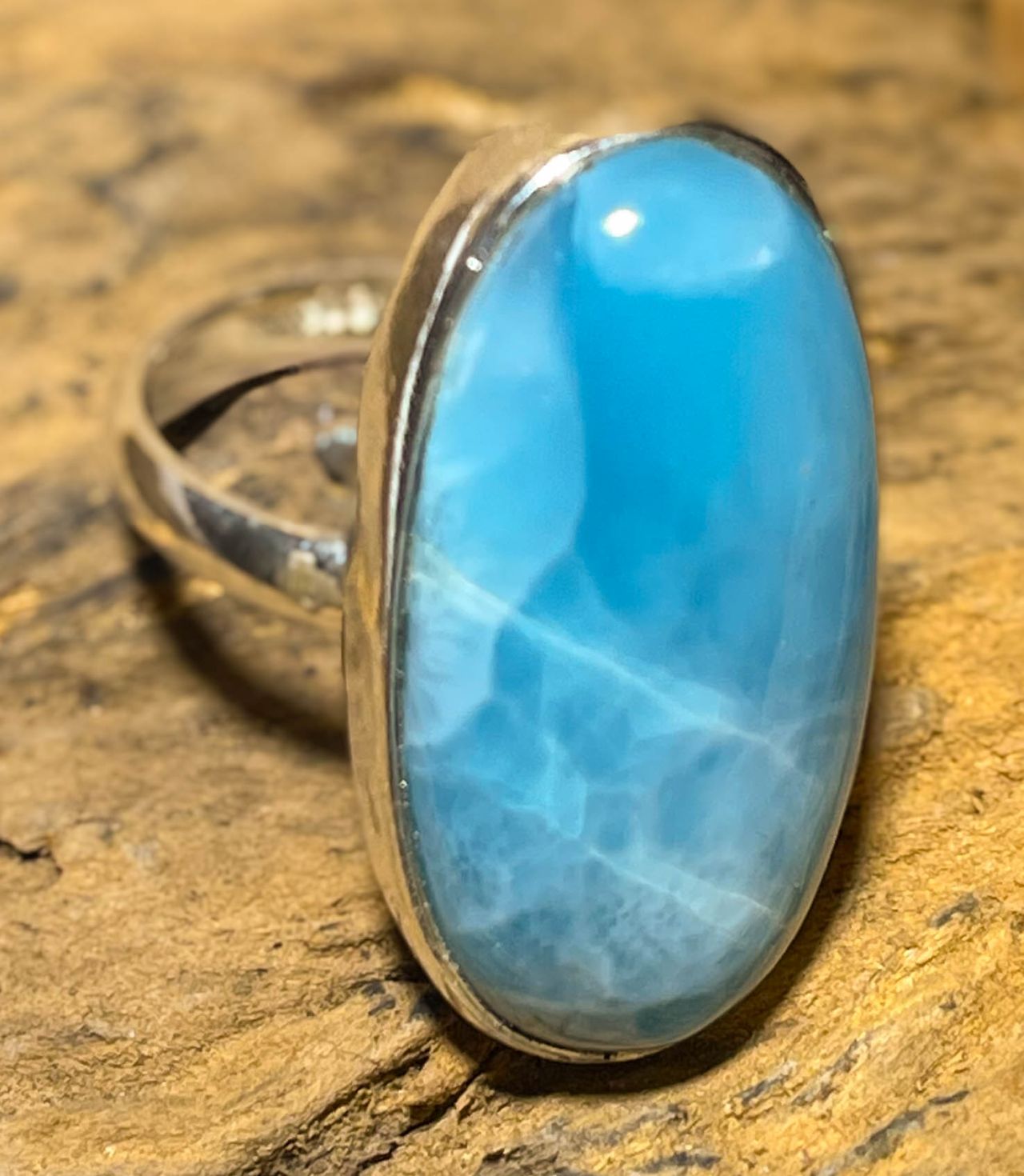 Edler Larimar Ring aus 925er Silber – handgefertigtes Unikat