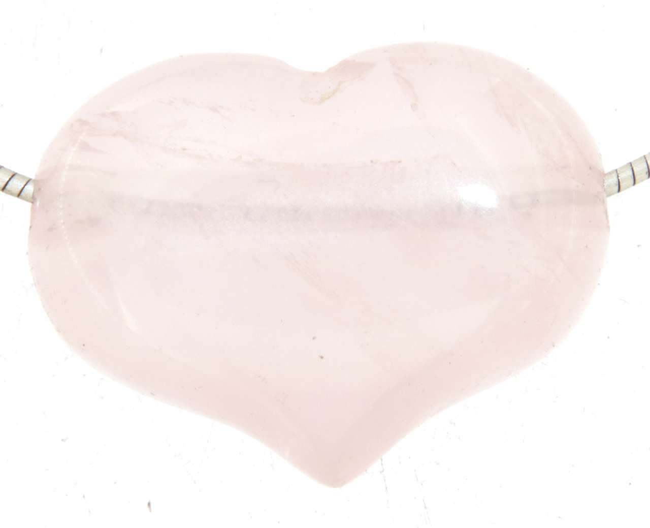 Edelstein: Rosenquarz – poliert, in geschwungener Herzform