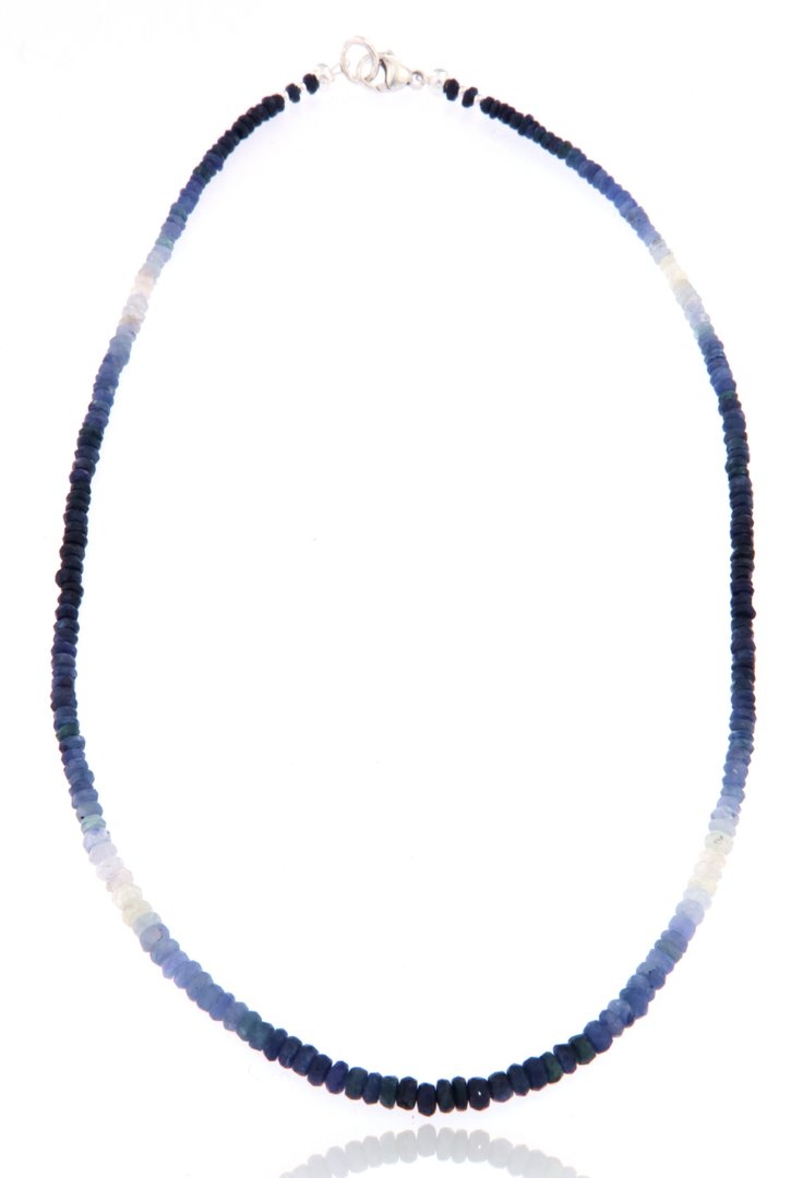 Ein elegantes Schmuckstück voller Tiefe und Ausdruckskraft: Dieses handgefertigte Edelstein-Collier aus Saphir verzaubert durch seine edlen Blautöne und den feinen Glanz der sorgfältig ausgewählten Edelsteine. Der Saphir, Symbol für Weisheit, Würde und Treue, verleiht diesem Collier eine klassische, zugleich kraftvolle Ausstrahlung.