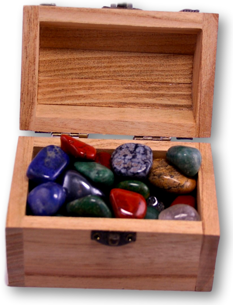 Diese wunderschöne Schatzkiste aus Holz, gefüllt mit echten Edelstein-Trommelsteinen in absoluter AAA-Qualität, ist ein einzigartiges und dekoratives Geschenk für Groß und Klein. Die ca. 250 g umfassende Mischung enthält über 10-15 verschiedene Steinsorten – sorgfältig ausgewählt, geschliffen und poliert, um ihre natürliche Schönheit und Energie perfekt zur Geltung zu bringen.-