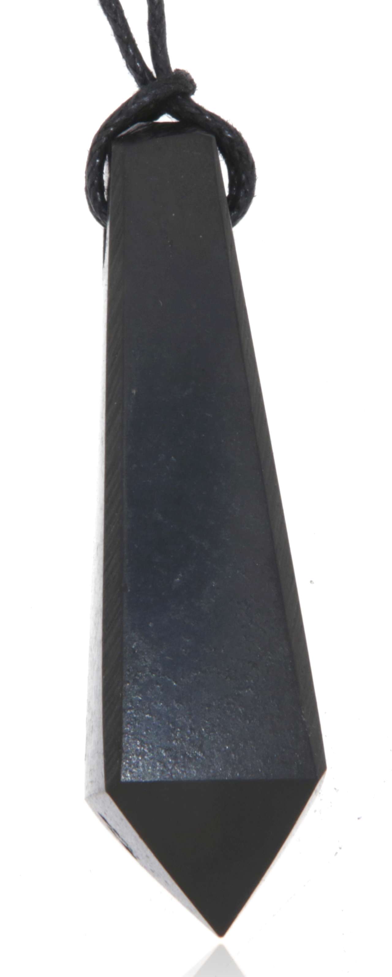 Edelstein Pendel-Anhänger aus Schungit – ca. 54 × 15 mm (inkl. Stoffband & Silberöse)