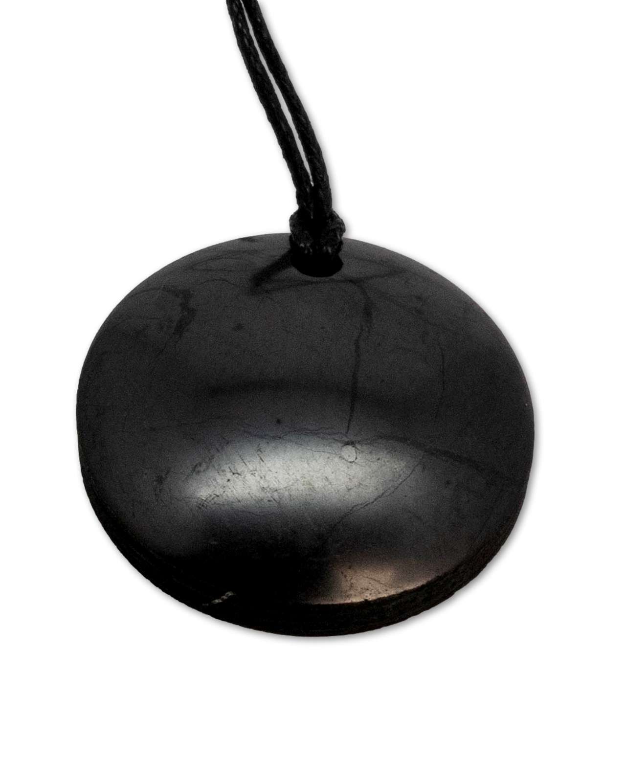 Edelstein Linsen-Anhänger aus Schungit – Ø ca. 30 mm (inkl. Stoffband)