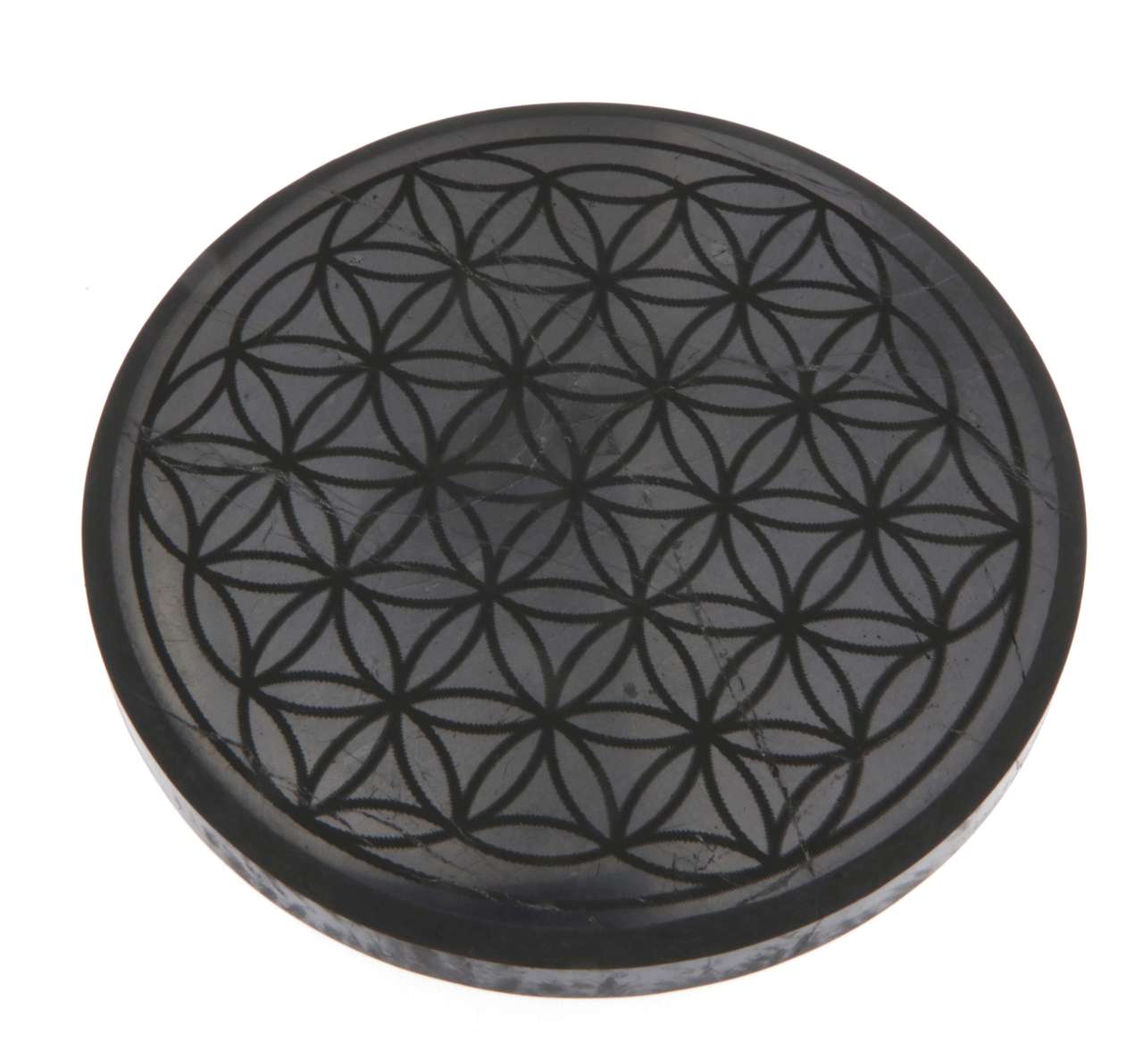 Schungit Platte „Blume des Lebens“ – poliert, Ø ca. 10 cm