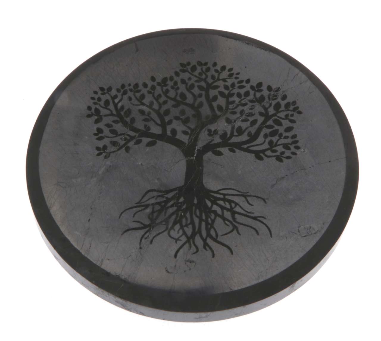 Schungit Platte „Baum des Lebens“ – poliert, Ø ca. 10 cm