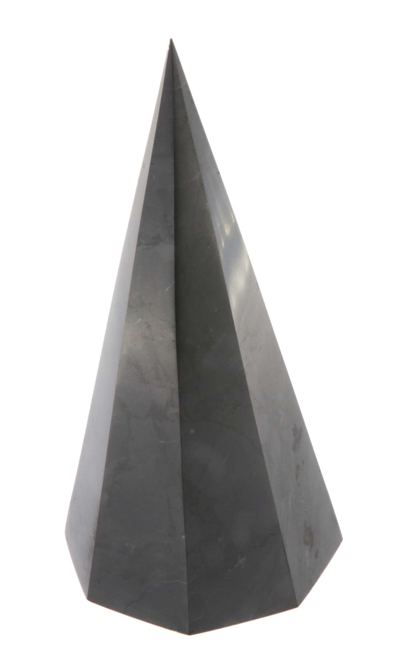 Eine edle Schungit Pyramide in achteckiger Form (octagonal) – handgefertigt aus 100 % echtem Schungit aus Karelien.