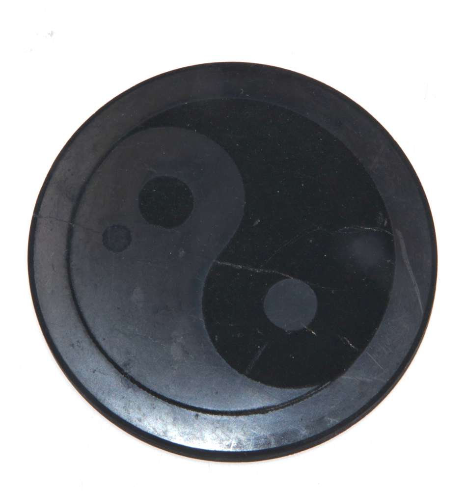 Schungit Scheibe mit Yin-Yang-Symbol – poliert (Ø ca. 5,5 cm)