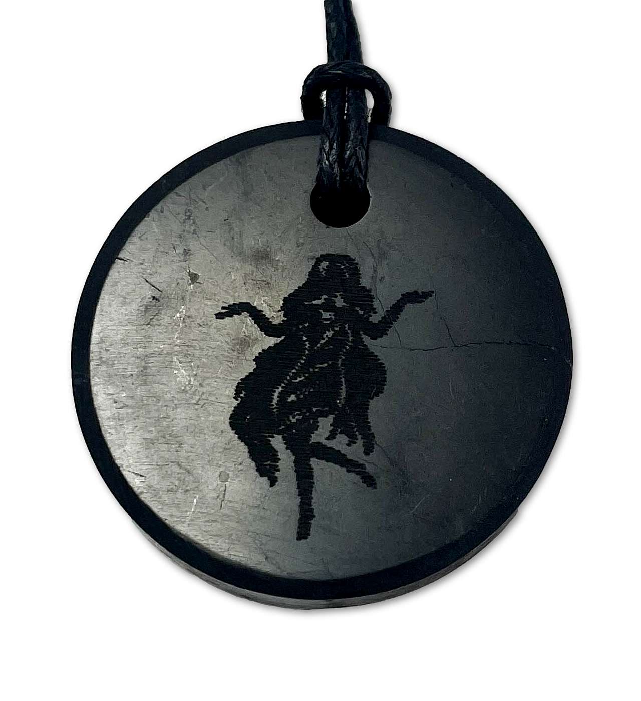 Ein edler Edelsteinanhänger aus echtem Schungit mit fein eingraviertem Sternzeichen „Jungfrau“, handgefertigt mit Liebe zum Detail.