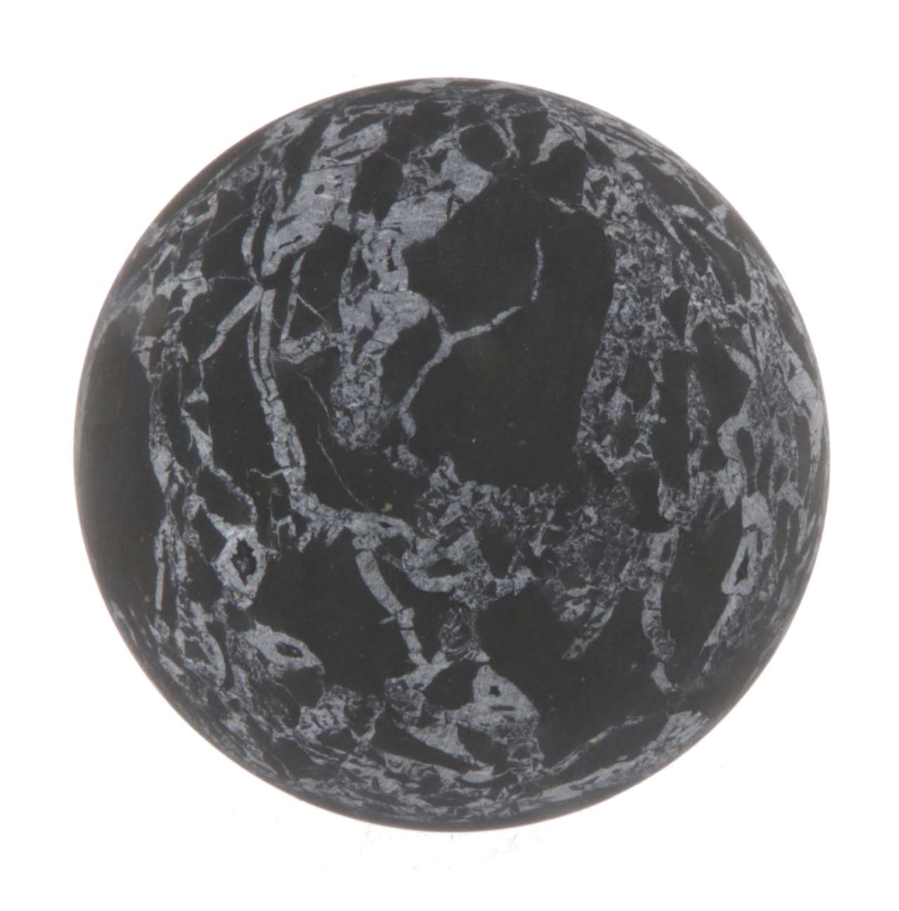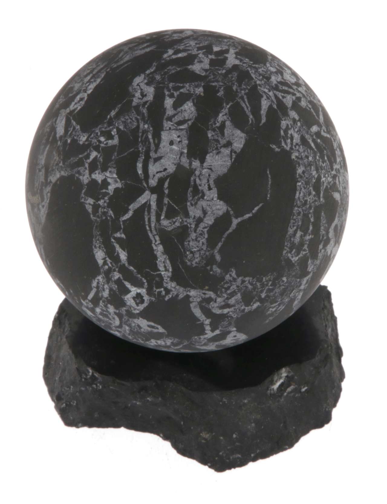 Eine edle Schungit Kugel mit Quarz-Einschlüssen, auch bekannt als Maksovskij-Schungit, benannt nach dem Fundort in Karelien (Russland).