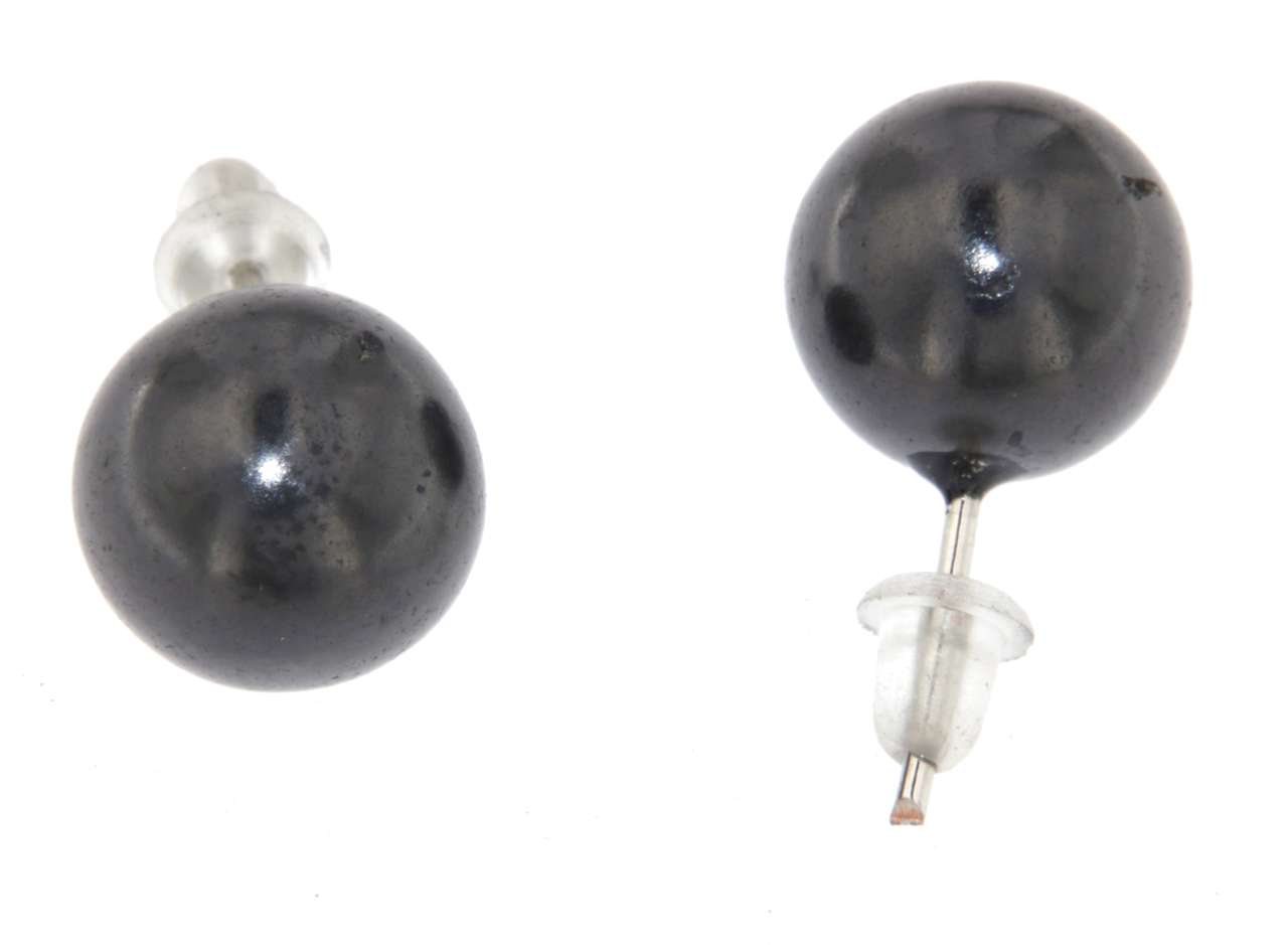 Ohrstecker „Schungit Kugel“ – versilbertes 925 Sterling Silber